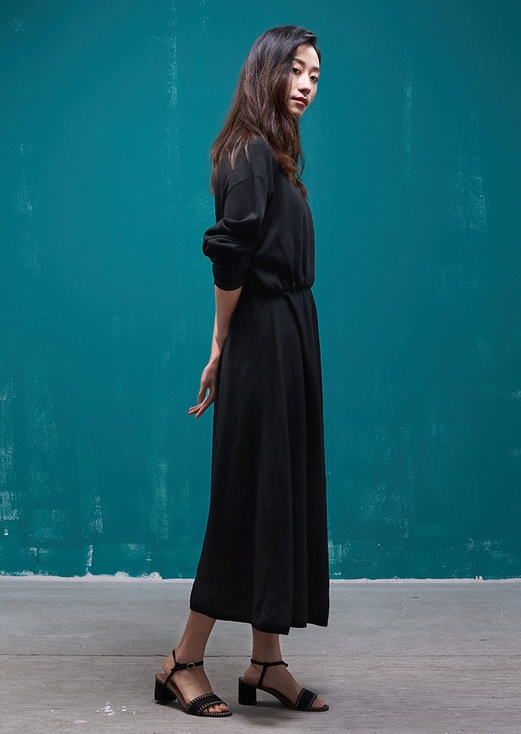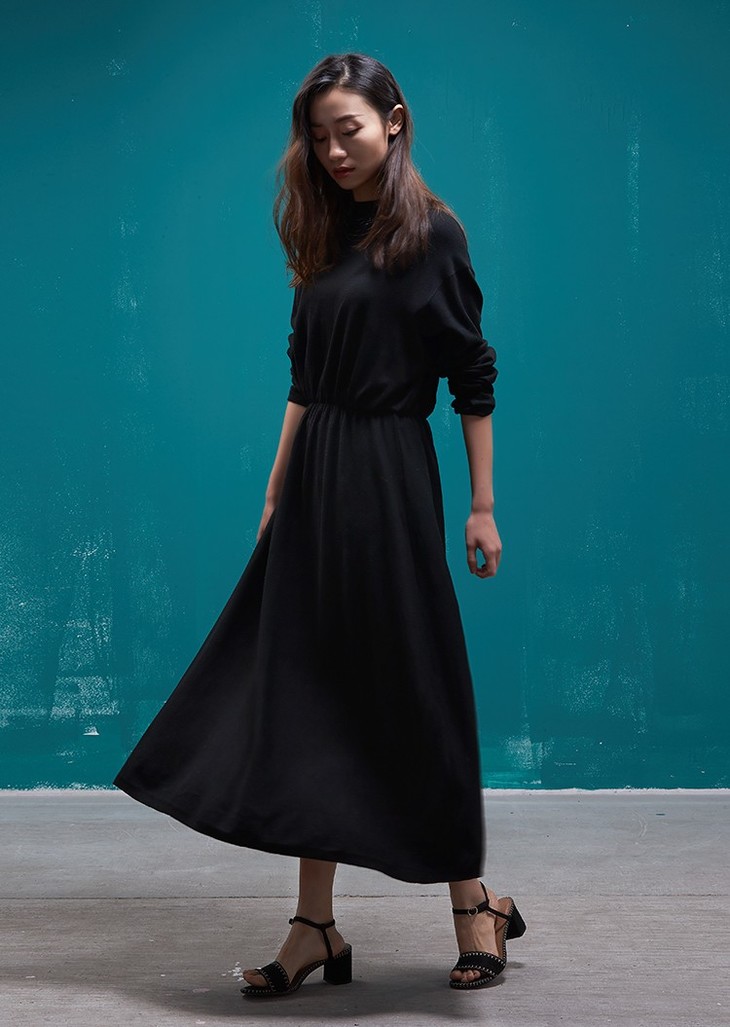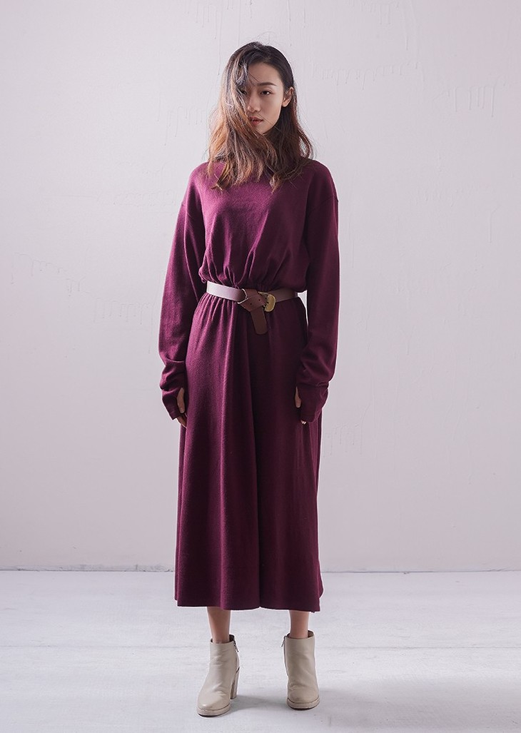 这件软糯舒适的连衣裙,是由粘胶、锦纶等纤维织就而成的科技面料,不仅有着毛织品轻软温润质感,外观上也时尚丰满,色泽柔和,显髙阶质感。