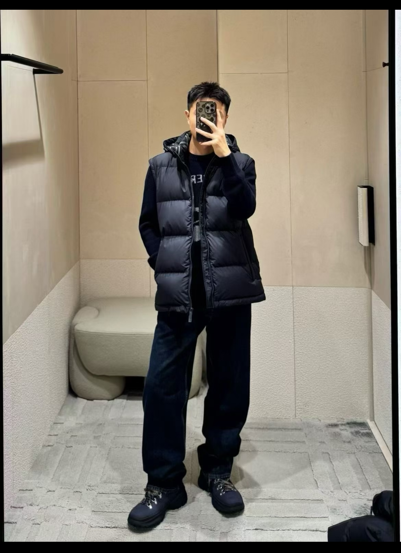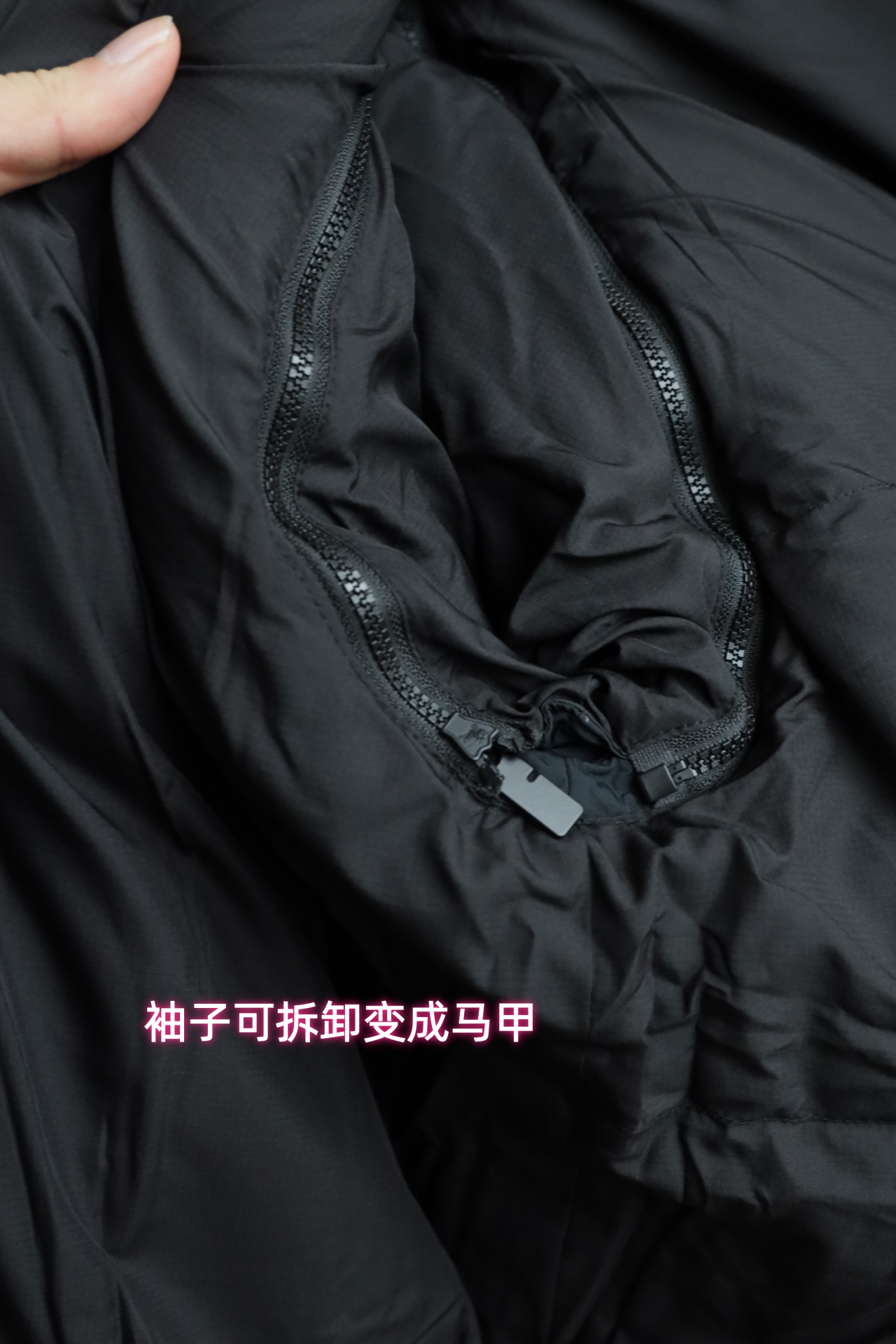 创新性地融入了可拆卸的衣袖功能,使得这款羽绒服能够轻松地在外套和背心两种造型之间自如切换,极大地提升了穿着的灵活性和多样性。