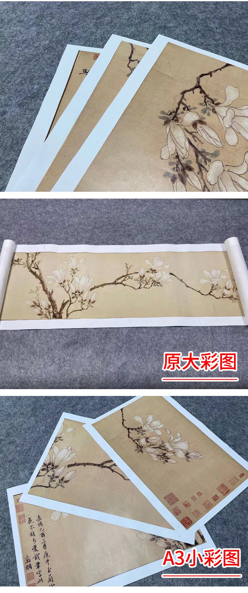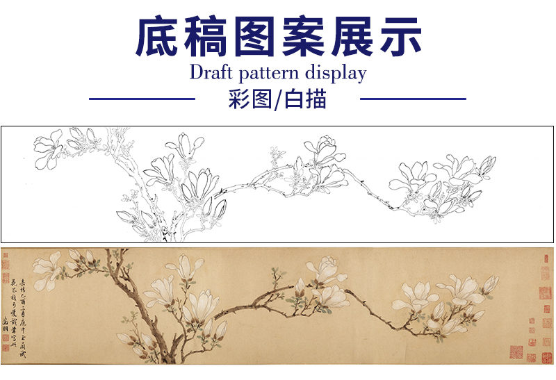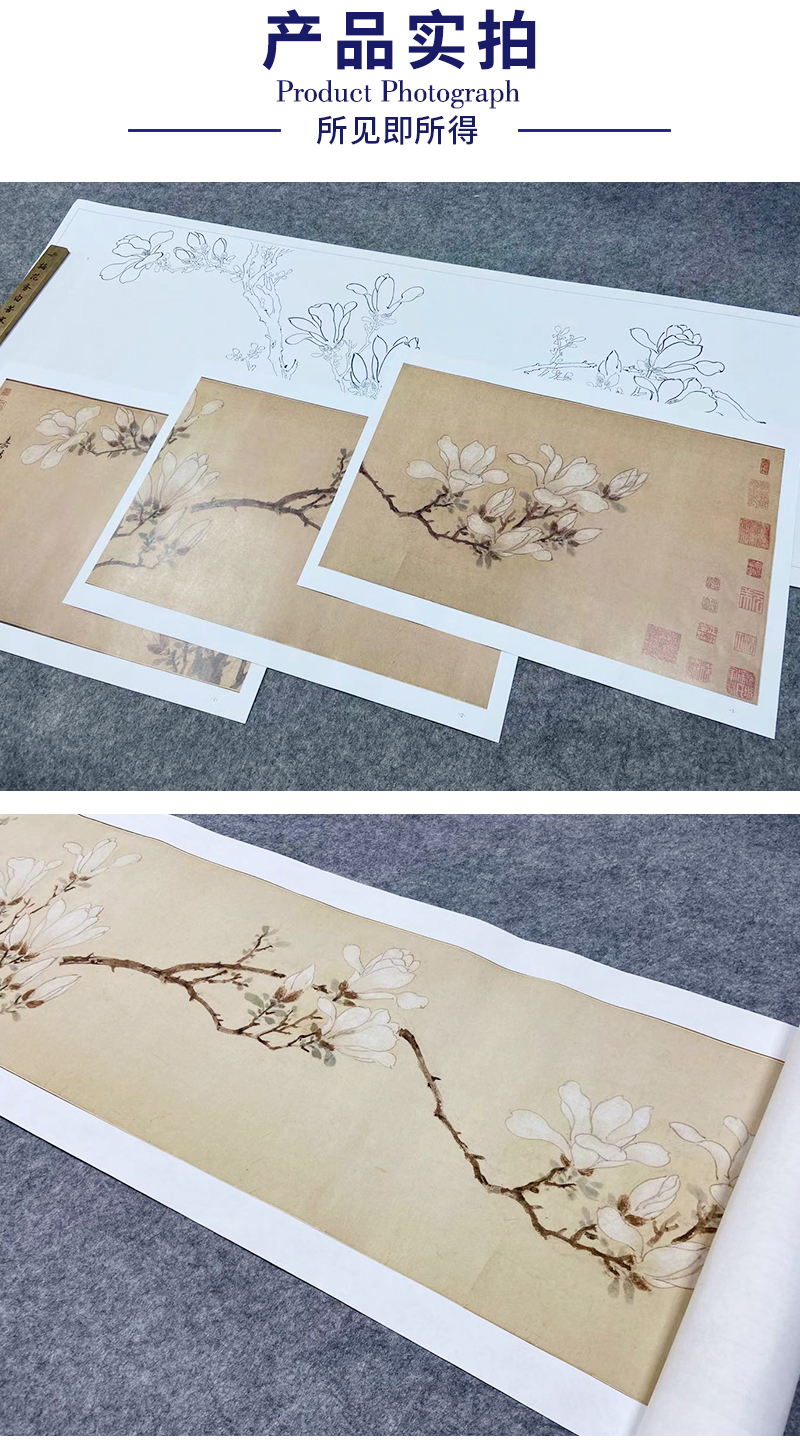 【长卷】工笔花鸟画白描底稿古画长卷文徵明《白玉兰图》多种白描尺寸可选G022