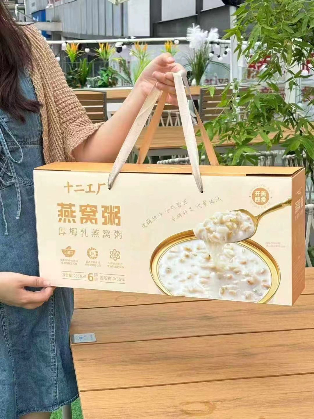 【燕麦燕窝粥/十二工厂燕窝粥】 配料表超级干净,礼盒牛皮质感上档次,厚椰乳燕麦燕窝粥。 经济实惠又不失面子,好选择#燕麦燕窝粥单碗组合 一日四时 滋养有方定制你的专属营养时刻表
