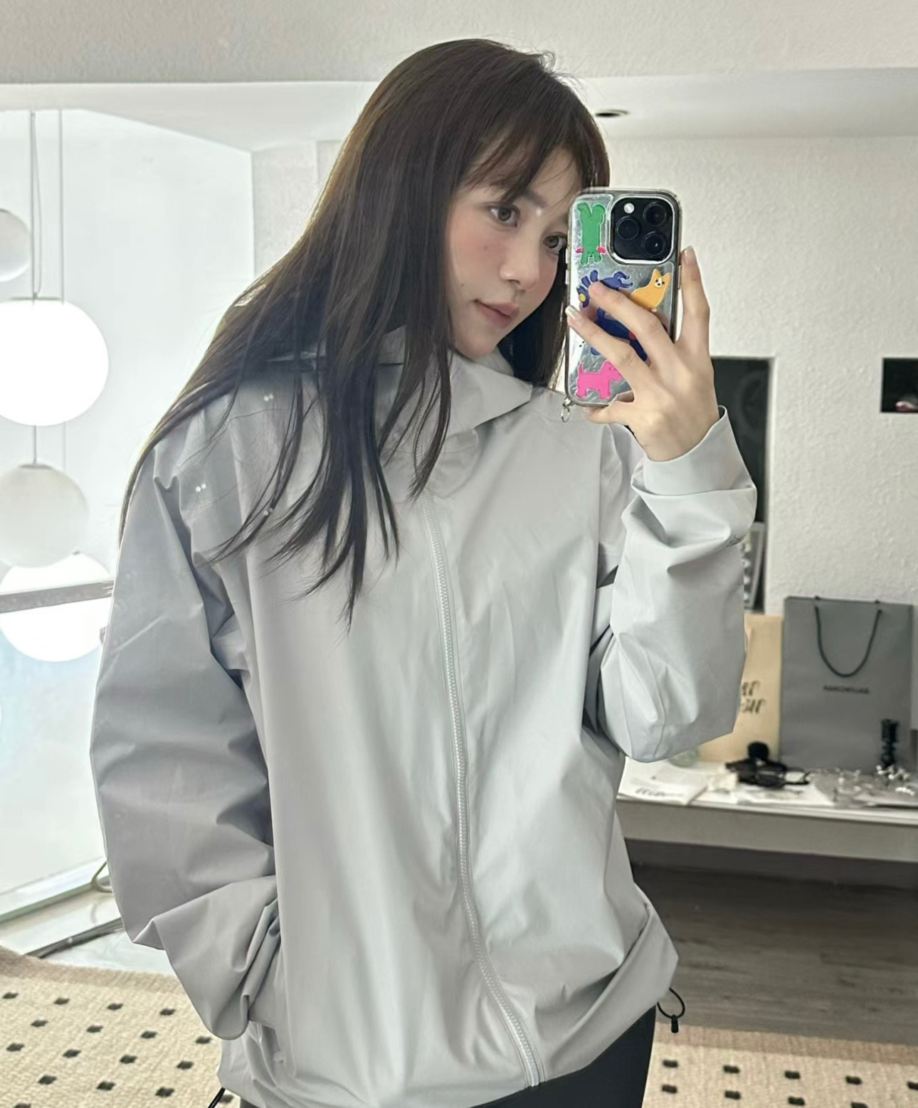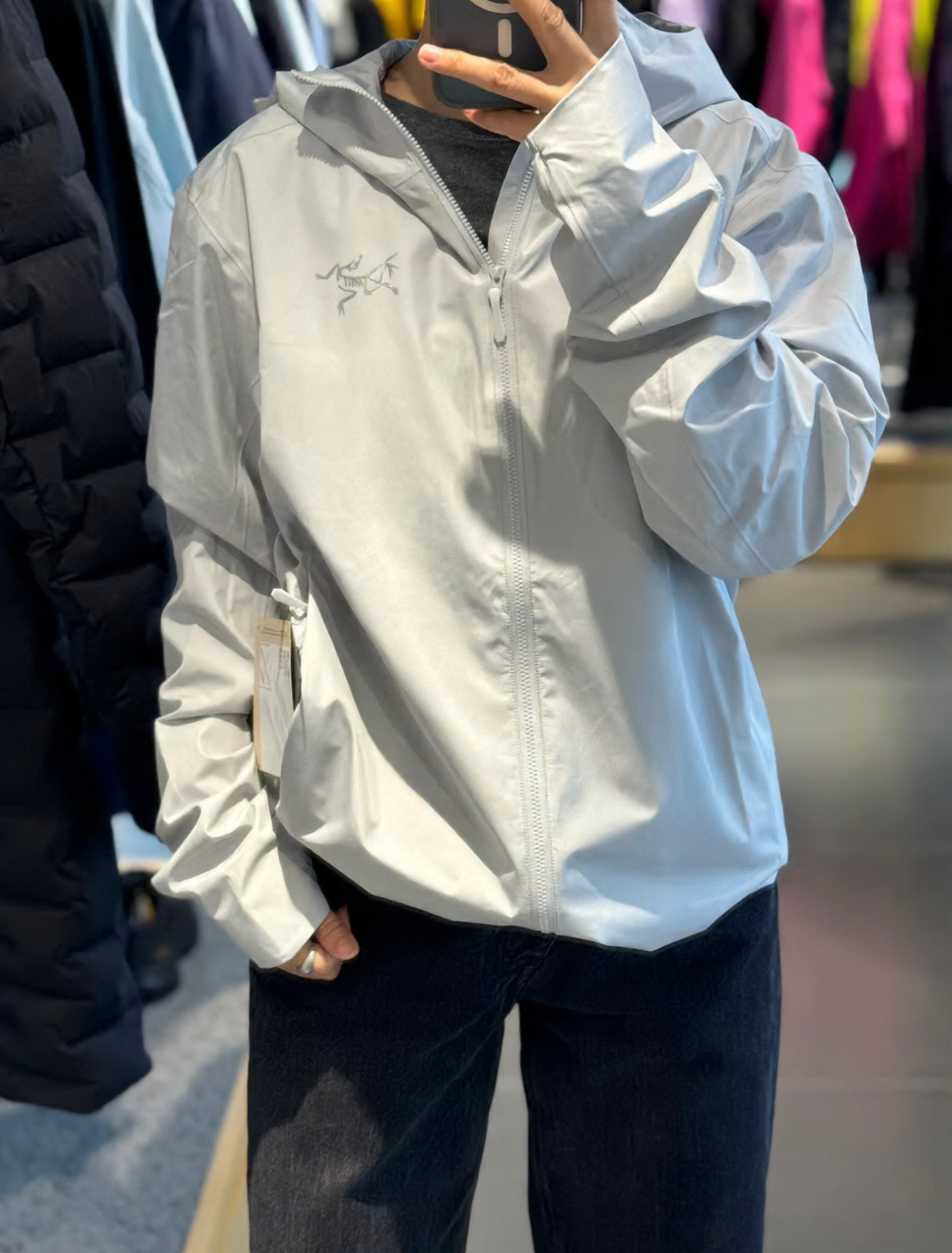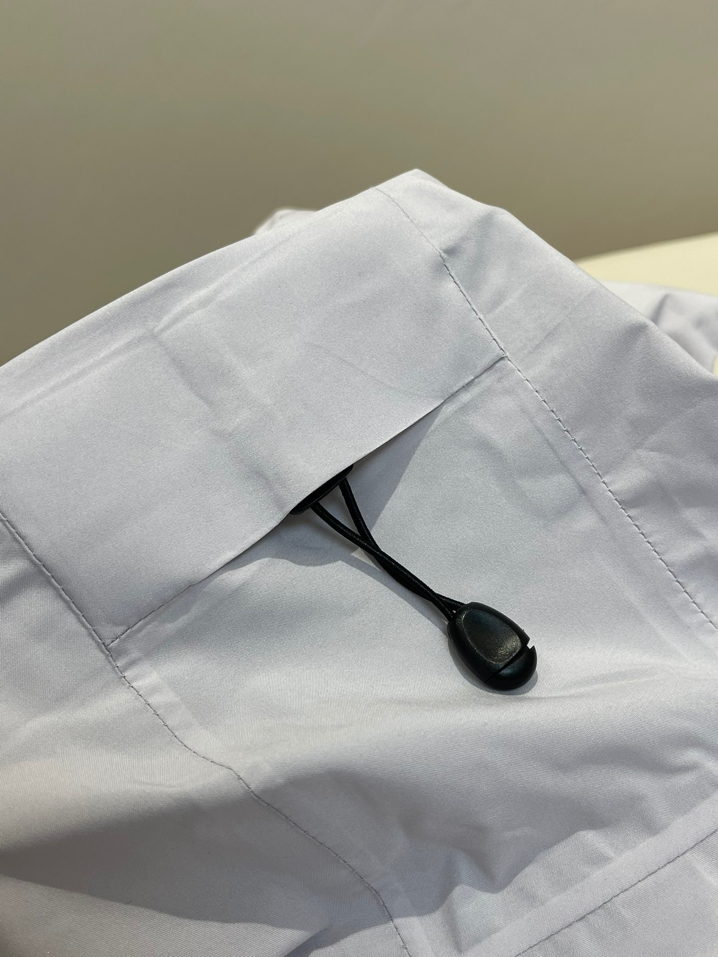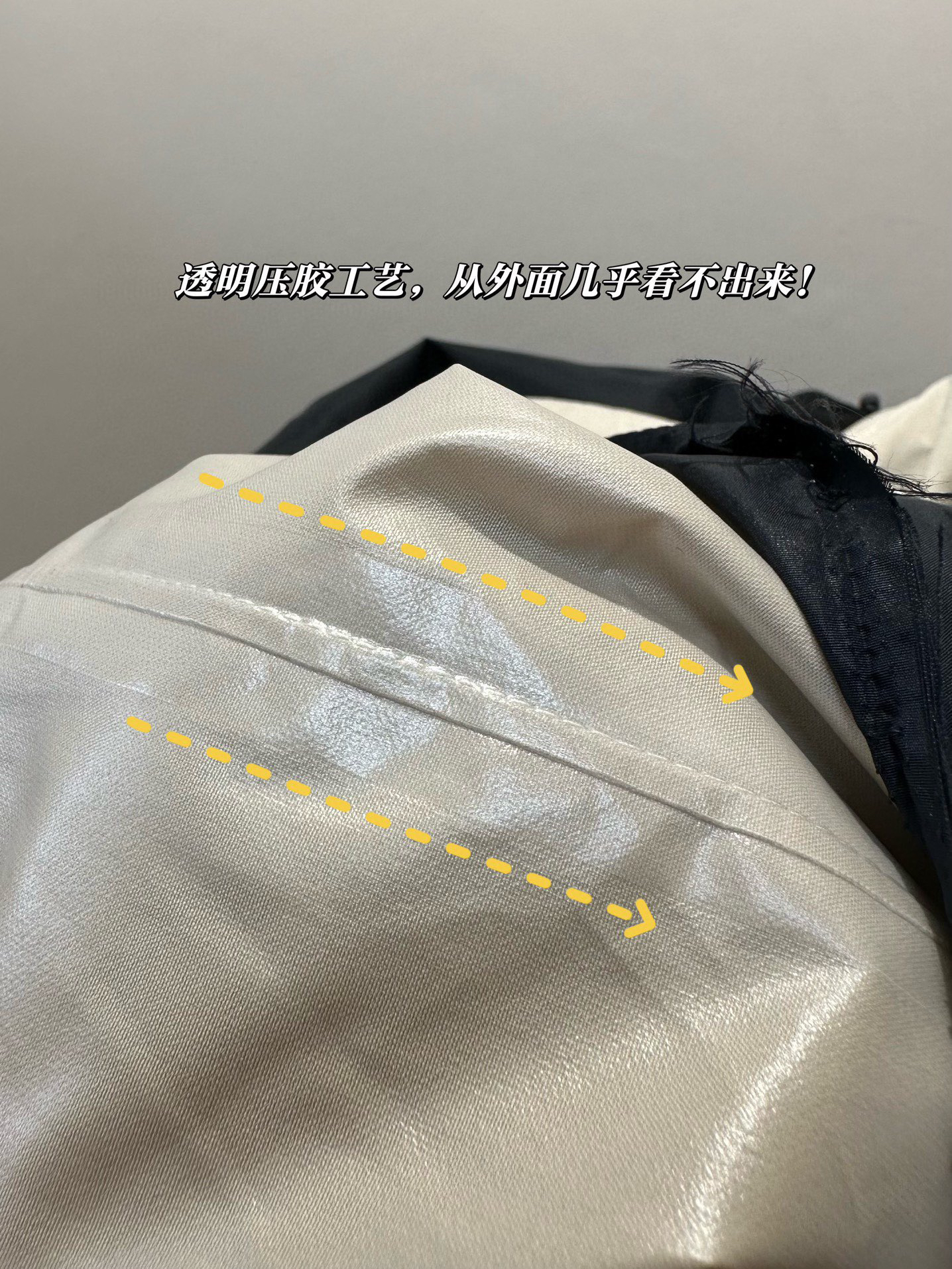 正单细节工艺欣赏!拆开一件看工艺,就知道为什么这款面料如此薄软 还能防风防水了!ePTFE膜,经过无氟DWR持久防泼水处理,不仅仅是防泼水,可以说中小雨根本淋不透!