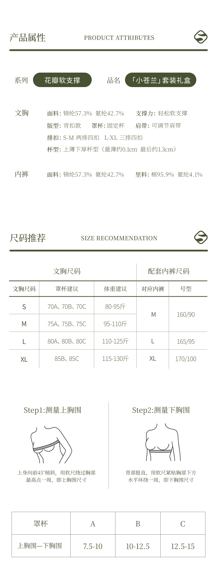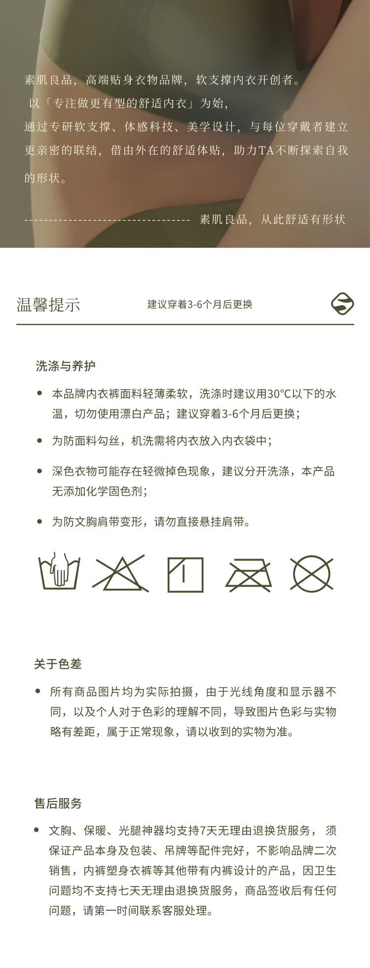 退换货规则:1.7天无理由退换货规则:品牌产品为贴身私密性衣物,务必保证所退产品吊牌水洗标齐全,无人为因素导致的破损、污渍、异味等影响二次销售的状况,否则,品牌有权不予退货退款,退货请将赠品一同寄回。内裤不支持7天无理由退换。换货差价将遵循多退少补的原则。