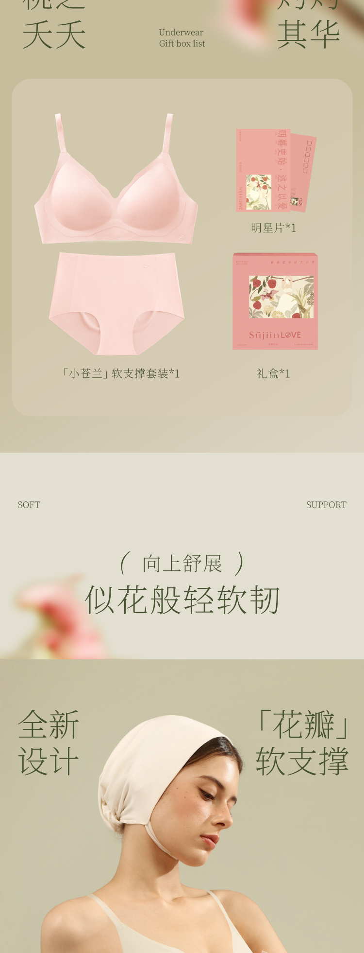 【E】素肌良品-粉色浪漫-女神专享 素肌良品苍兰挚爱限定女神内衣套装礼盒MX227 商品图2