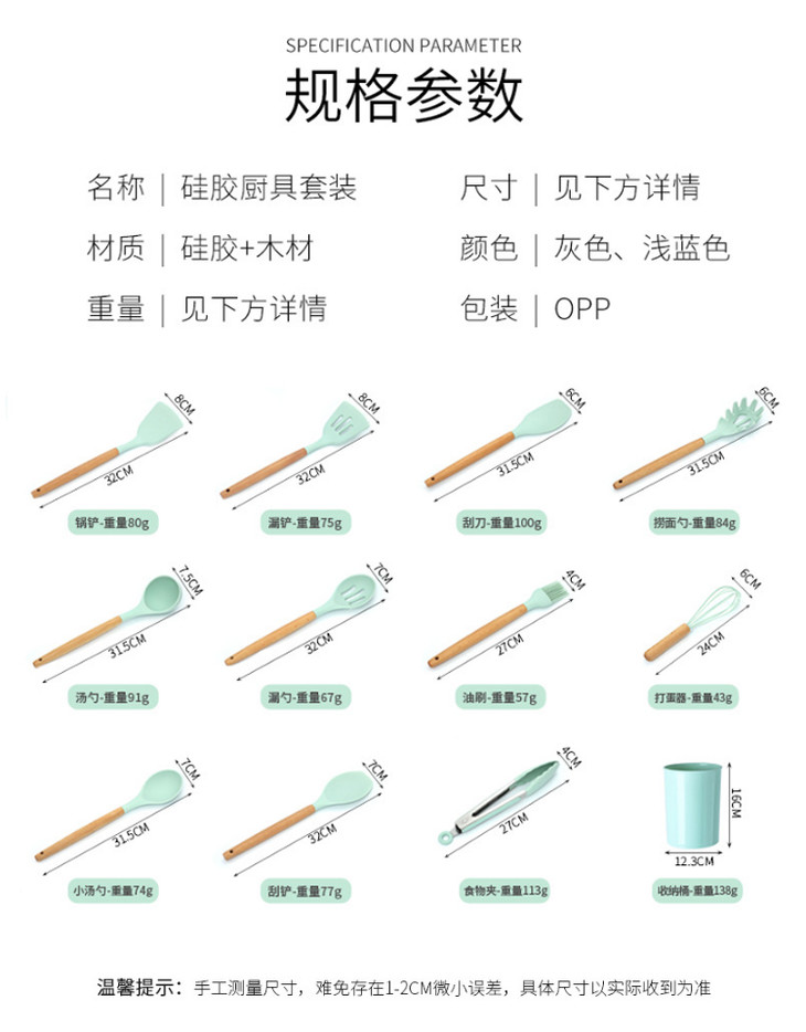 【榉木12件套厨具套装】欧式硅胶锅铲家用烹饪神器 炒菜耐高温餐具不粘锅专用汤勺子