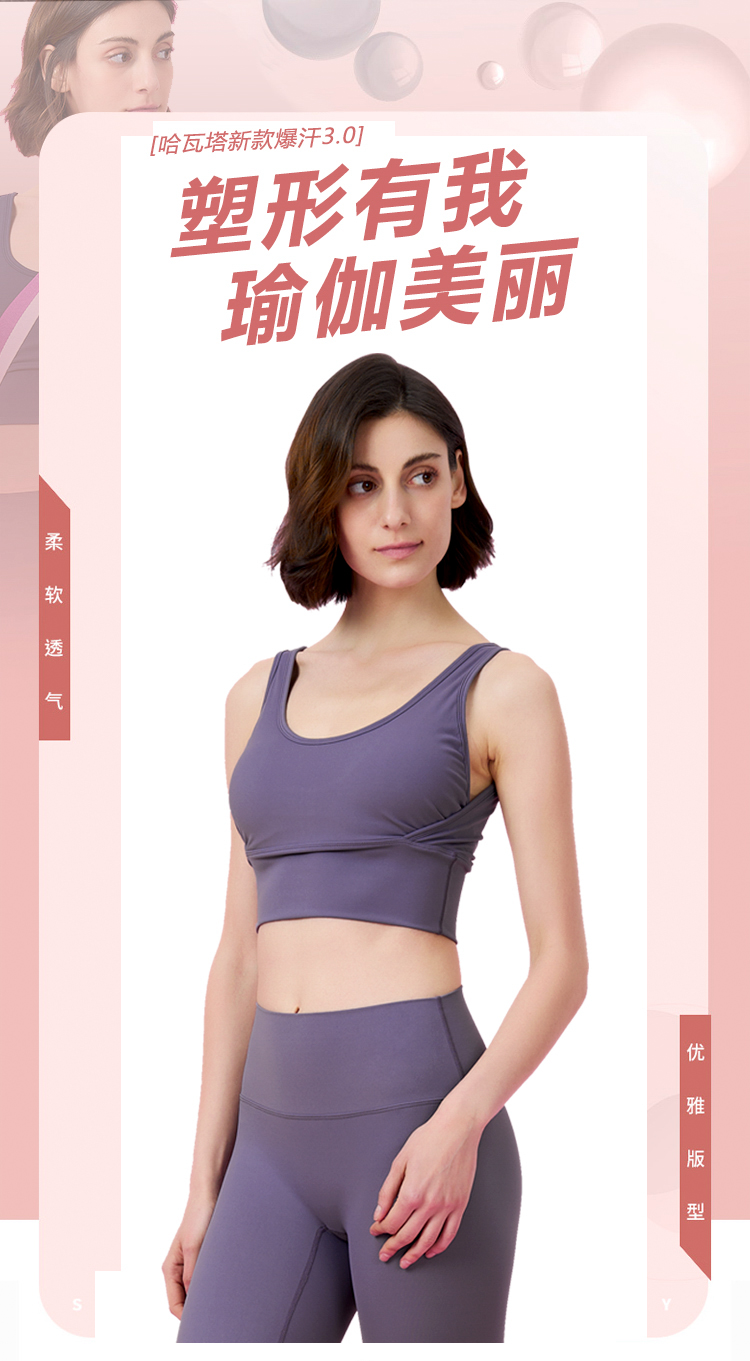 《福利款》哈瓦塔2022新款暴汗裸感3.0瑜伽服健身服跑步服舞蹈服锦纶春夏无袖套装H320102