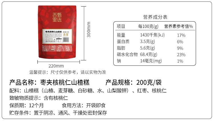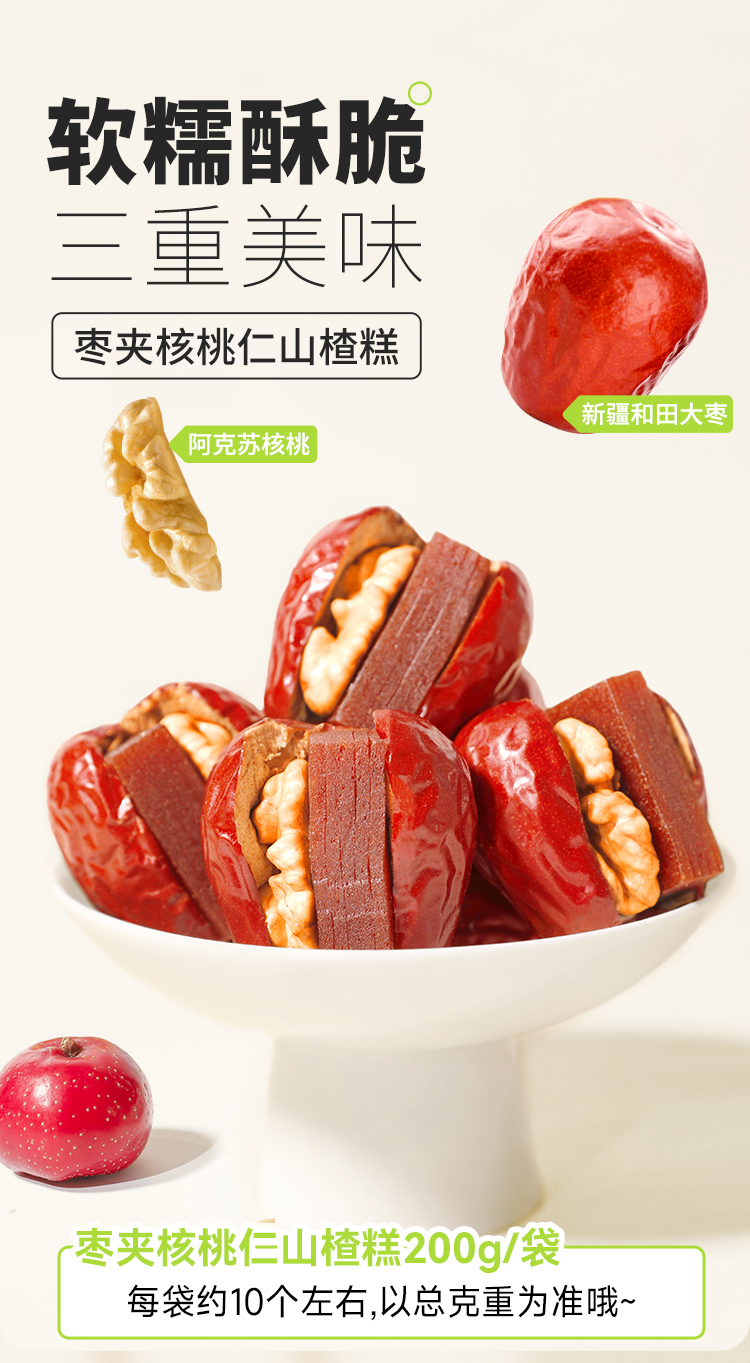 【爆款热卖】舌里枣夹核桃仁山楂糕200g/袋 口感酥脆 独立包装