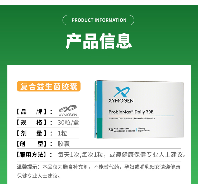 【效期至27年11月】【新老包装随机发货】复合益生菌胶囊 XYMOGEN ProbioMax Daily DF 30粒/盒