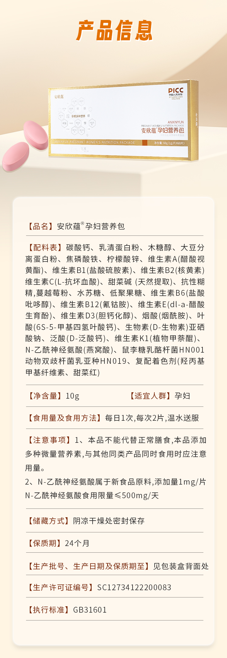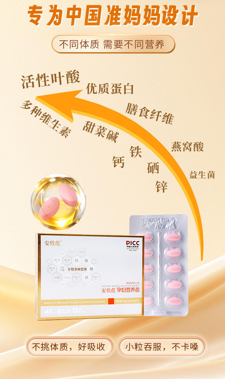 安欣蕴孕妇营养包、孕妇活性叶酸复合维生素【买三送一,买五送二】