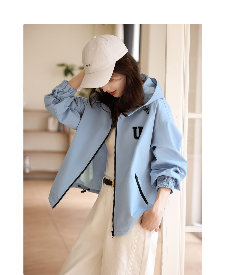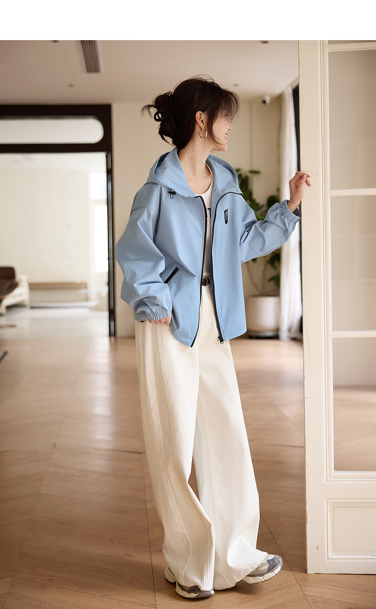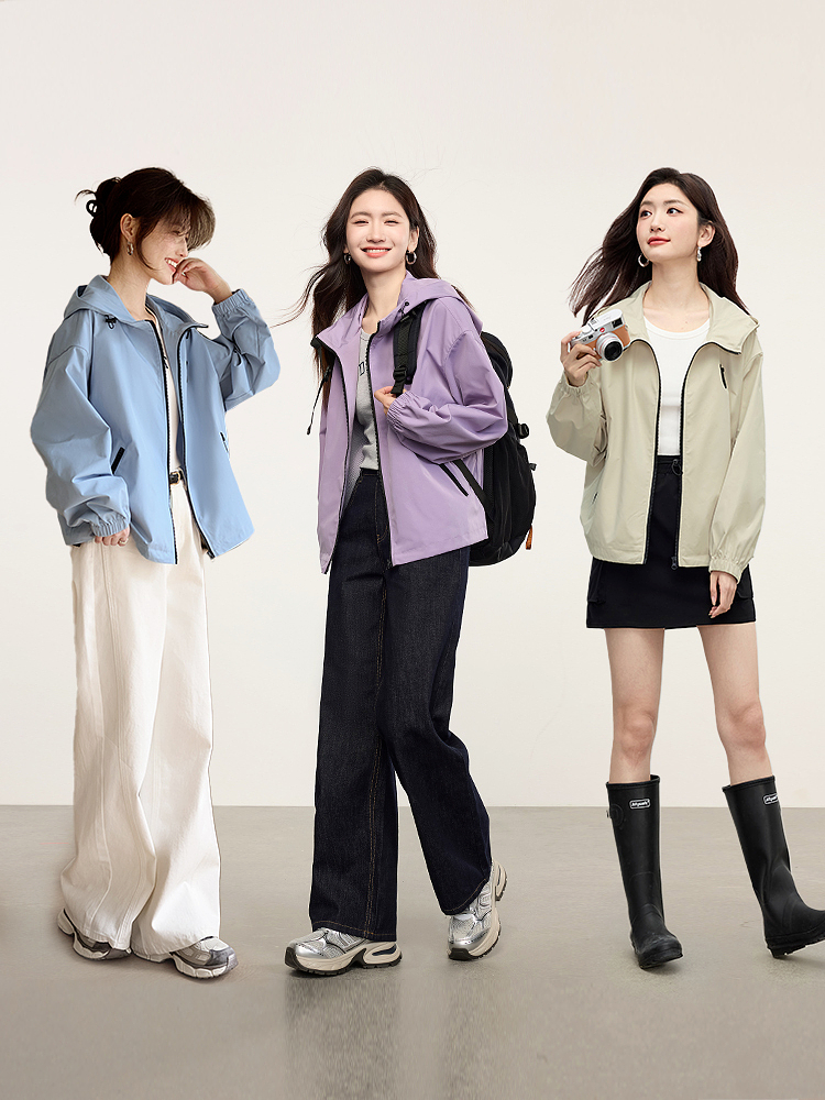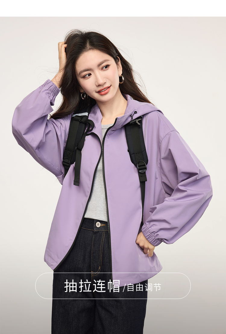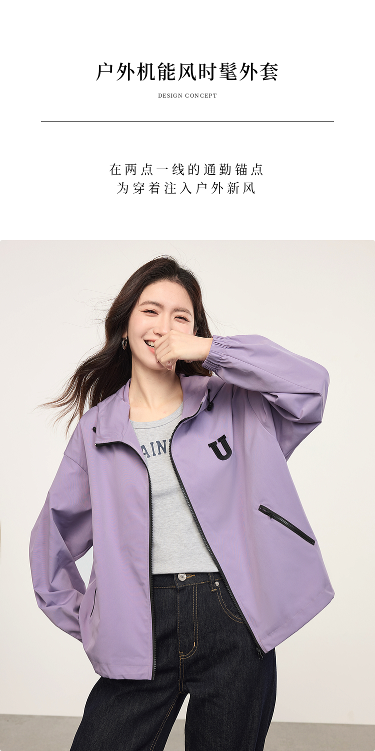 【年货节】熙世界户外机能风外套女短款2025早春新款宽松连帽开衫上衣冲锋衣