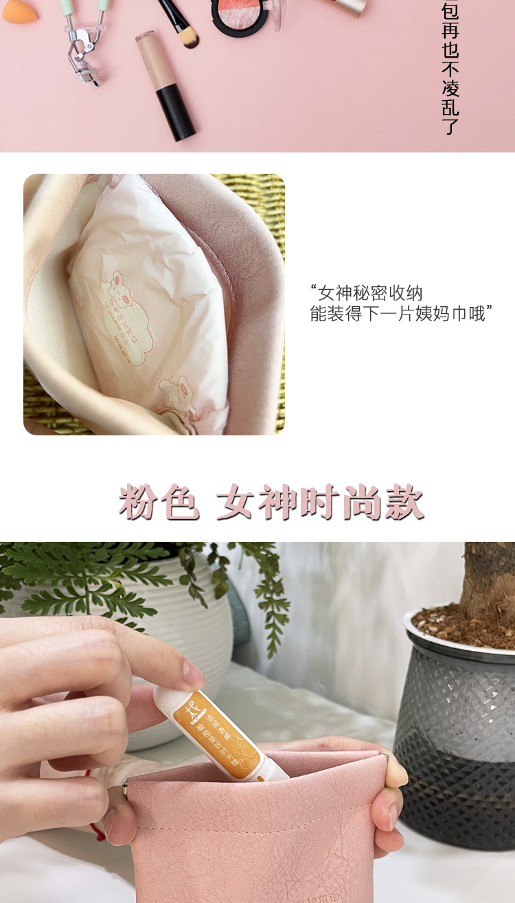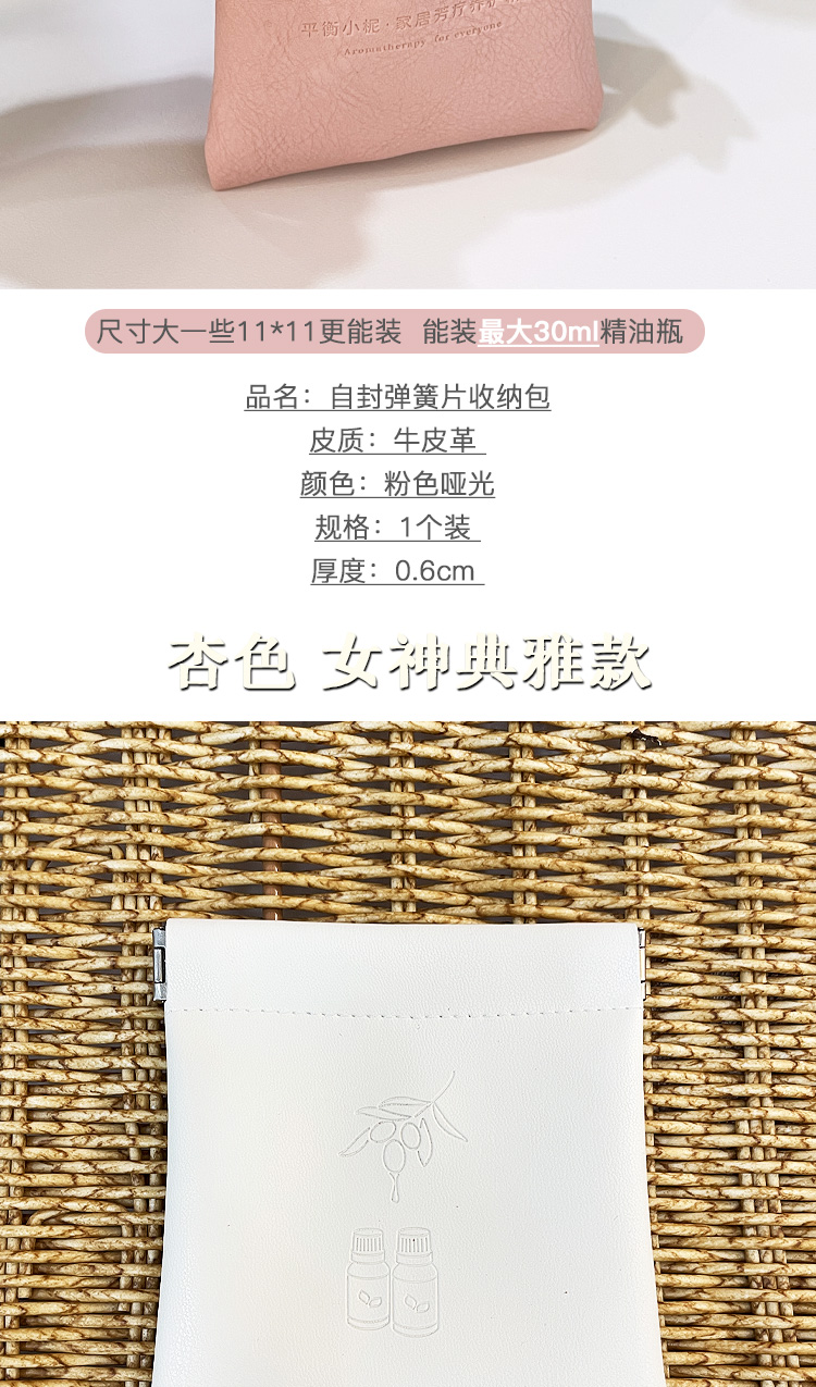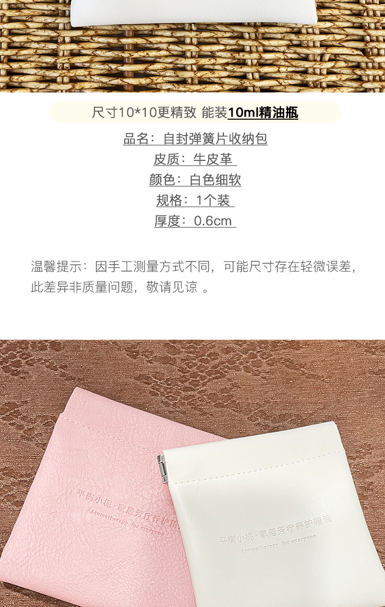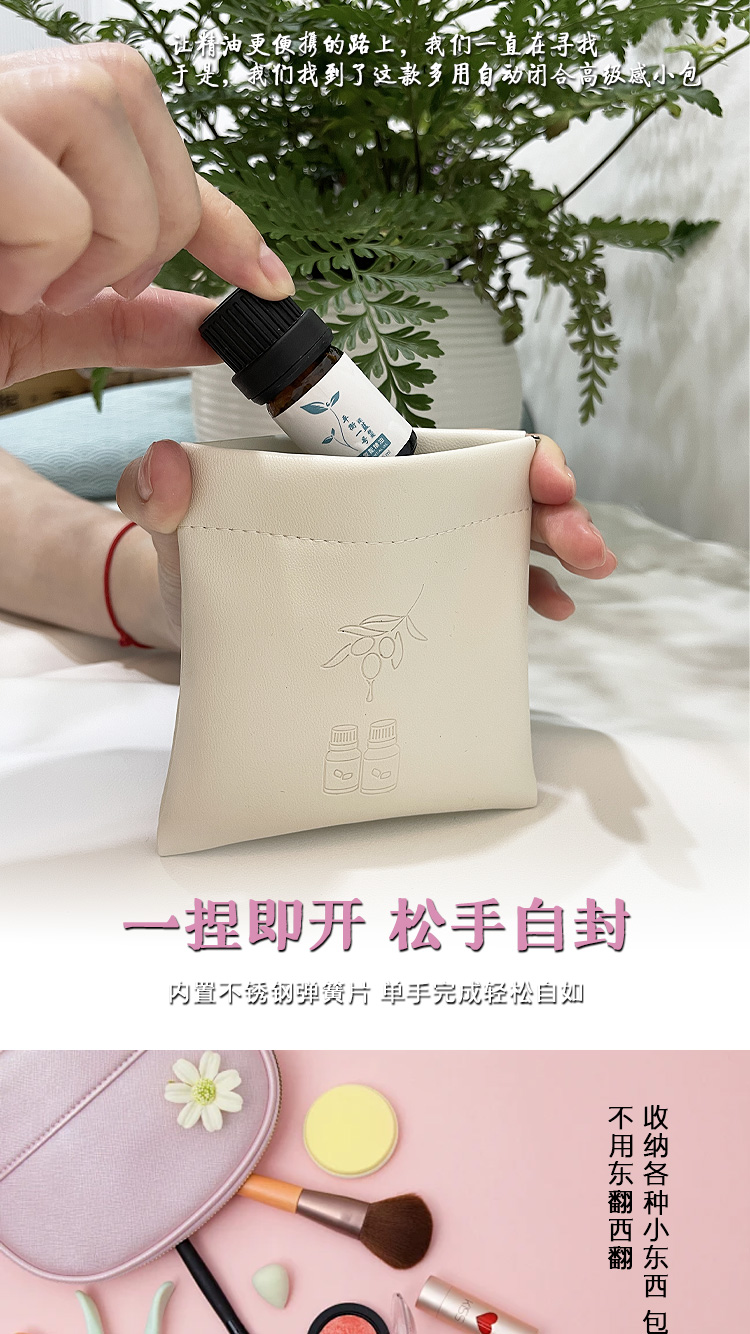 平衡小柅 弹片自动闭合收纳袋 皮小包 收纳精油 口红 耳机 钥匙 硬币 耳钉 戒指 小包 粉色皮料 白色软皮 零钱包 迷你手拿包 高级感