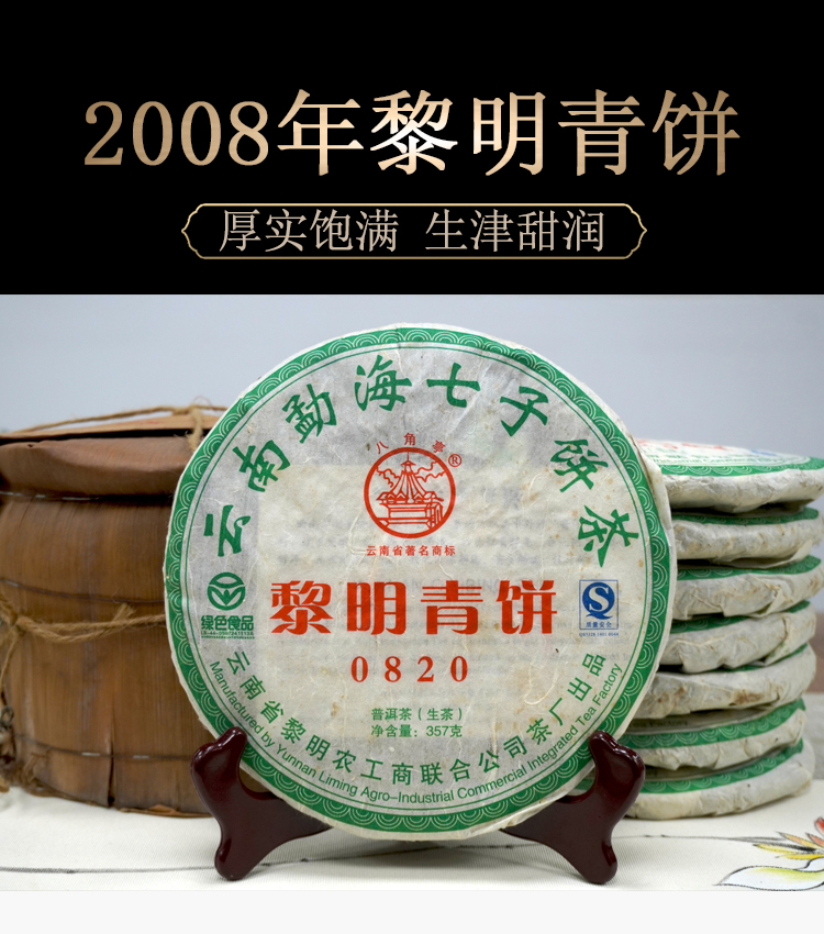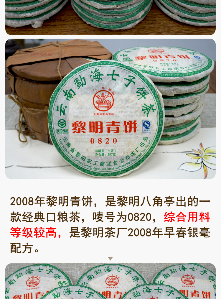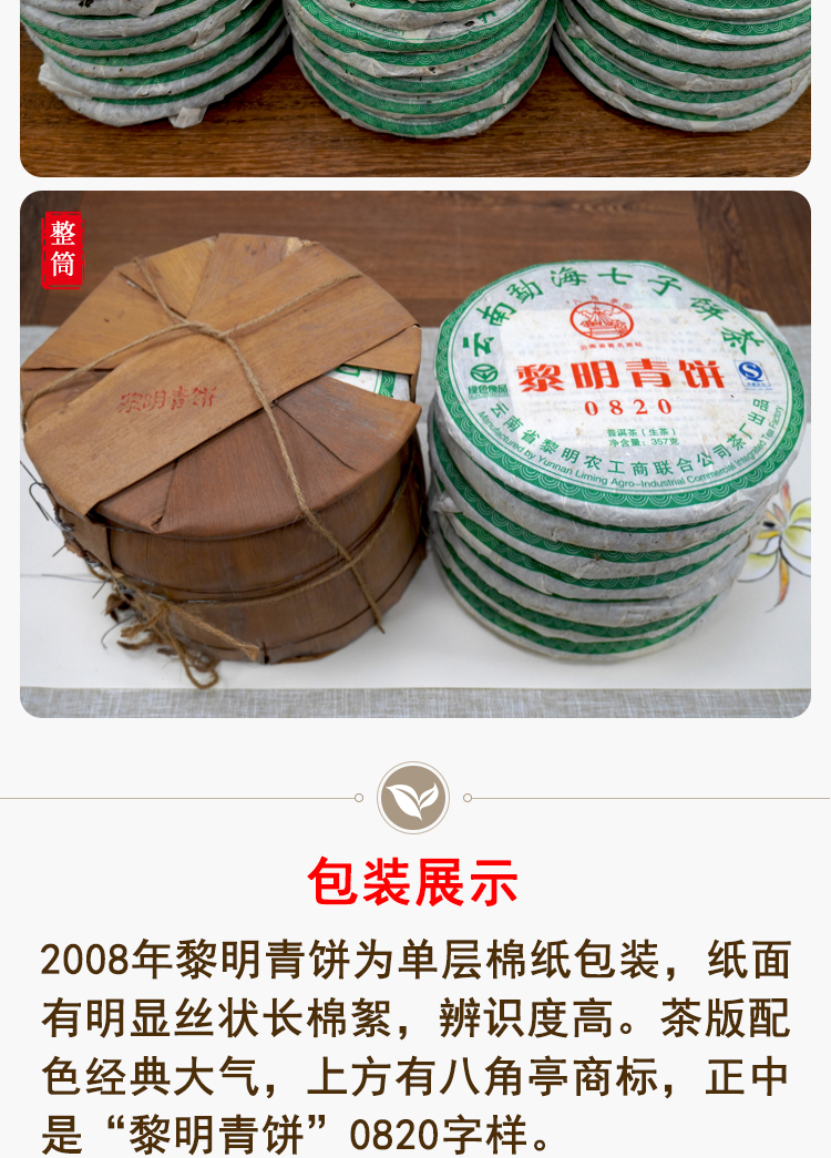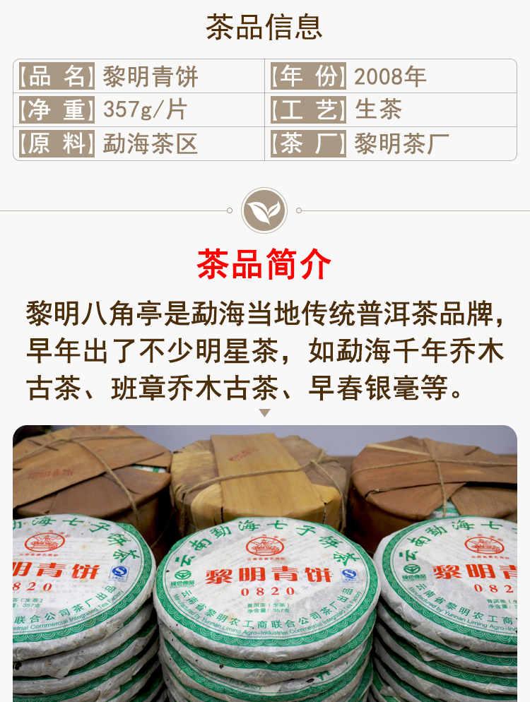 2008年黎明茶厂八角亭黎明青饼0820普洱茶生茶饼 回甘好甜润 高性价比好生茶 干仓真品