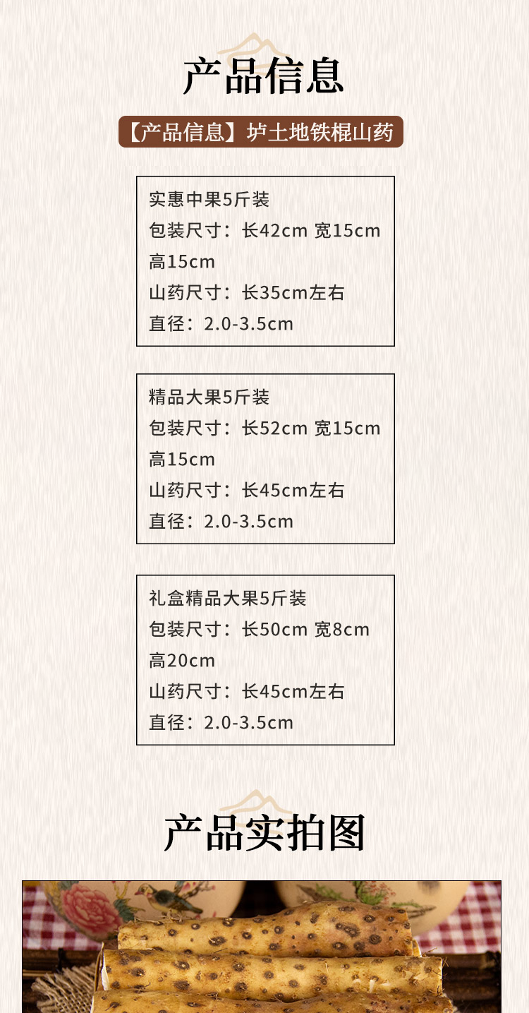 温县垆土新鲜铁棍山药 | 香甜面糯 肉质紧密全规格包装2500g/箱