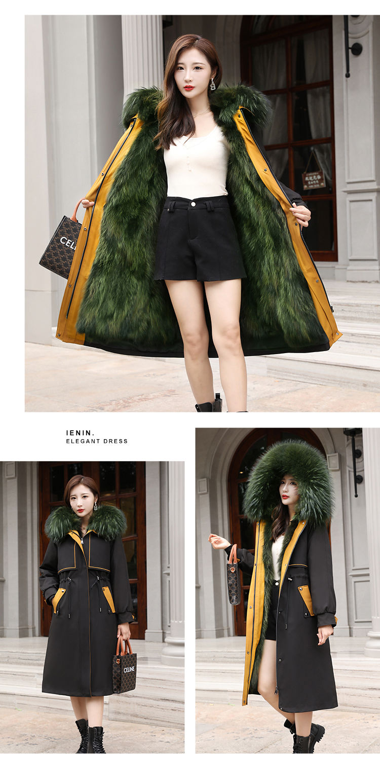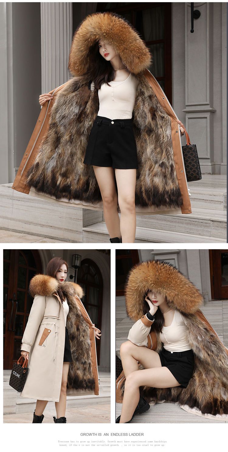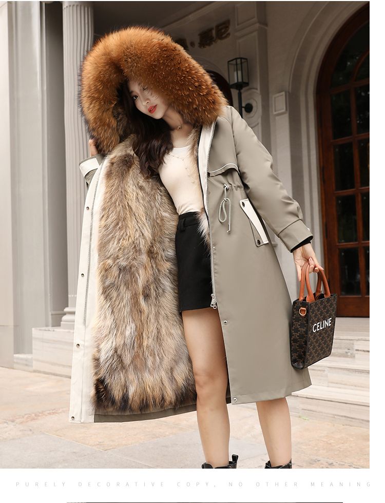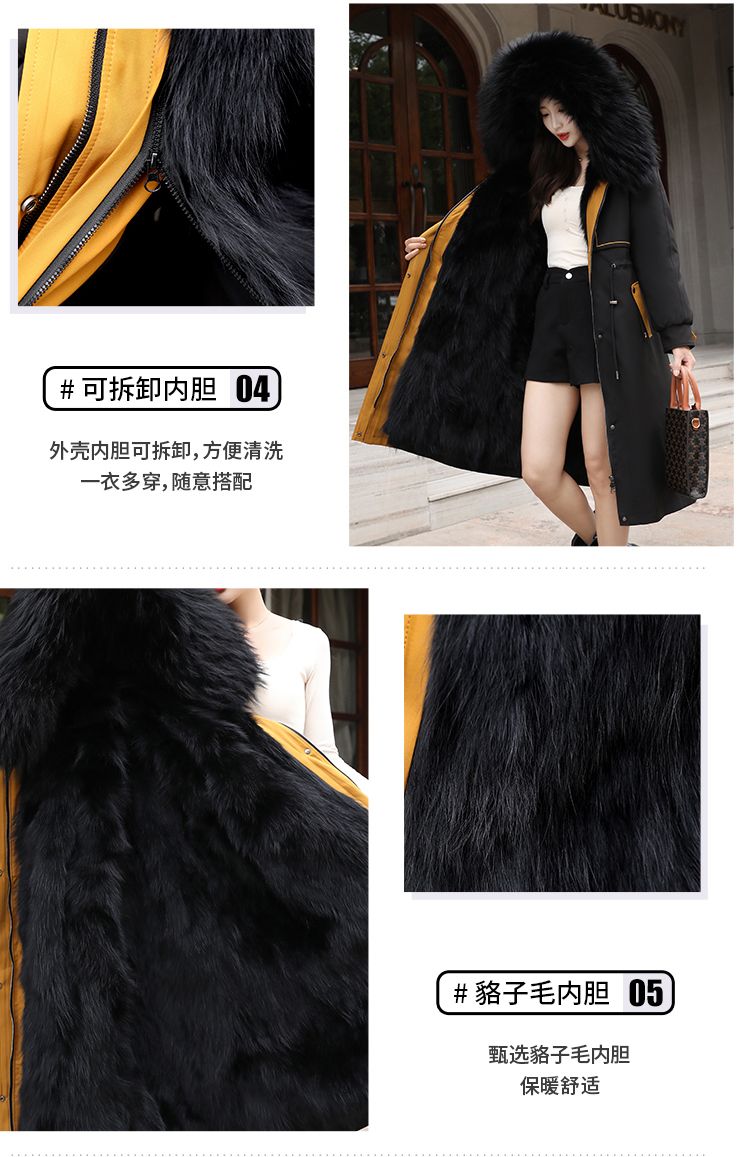 DD-2023新款貉子毛内胆派克服女可拆卸中长款派克服大衣皮外套女冬