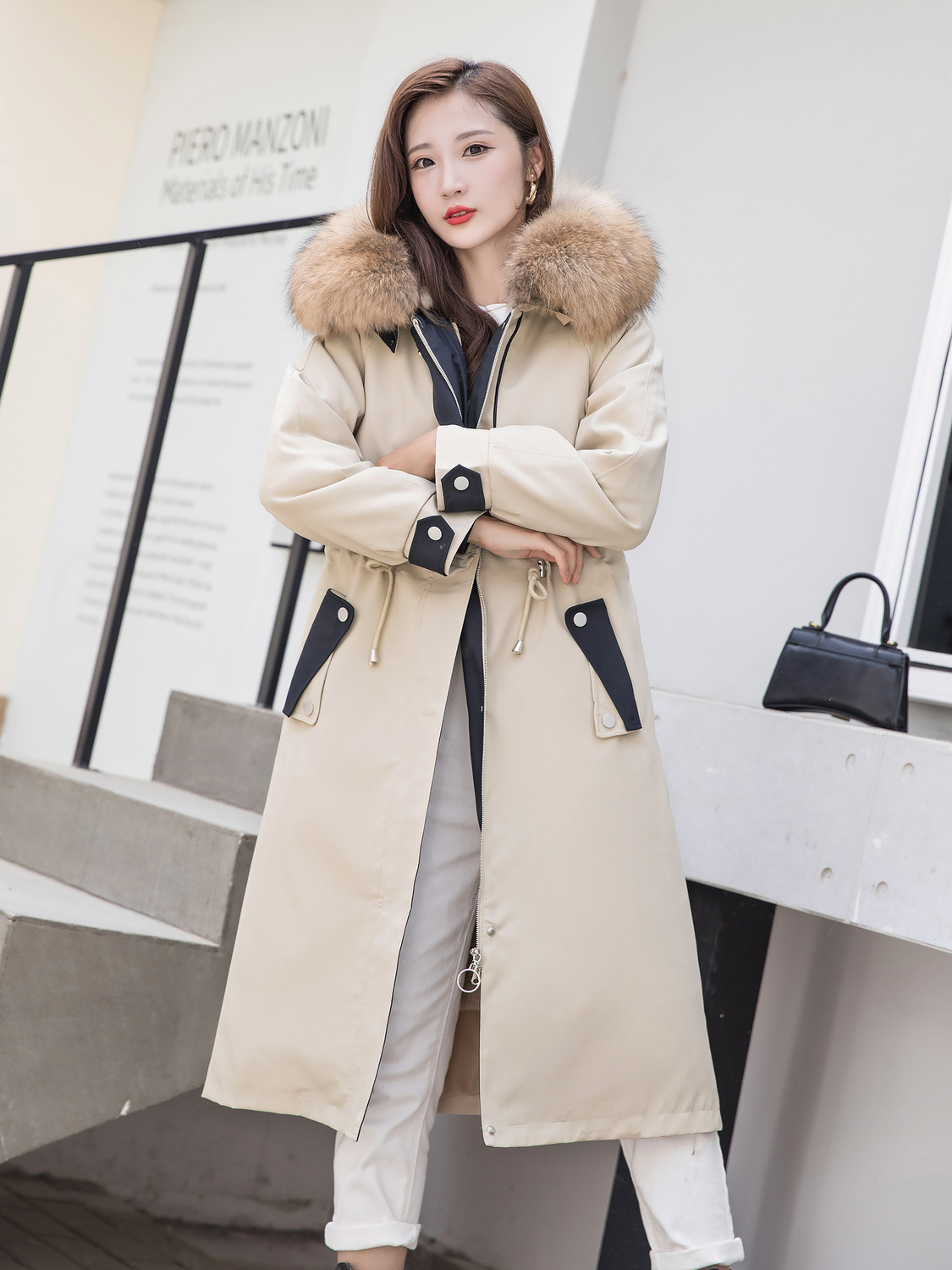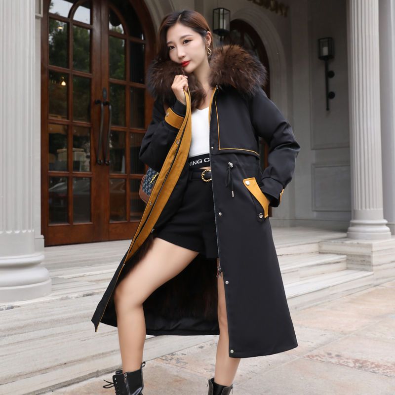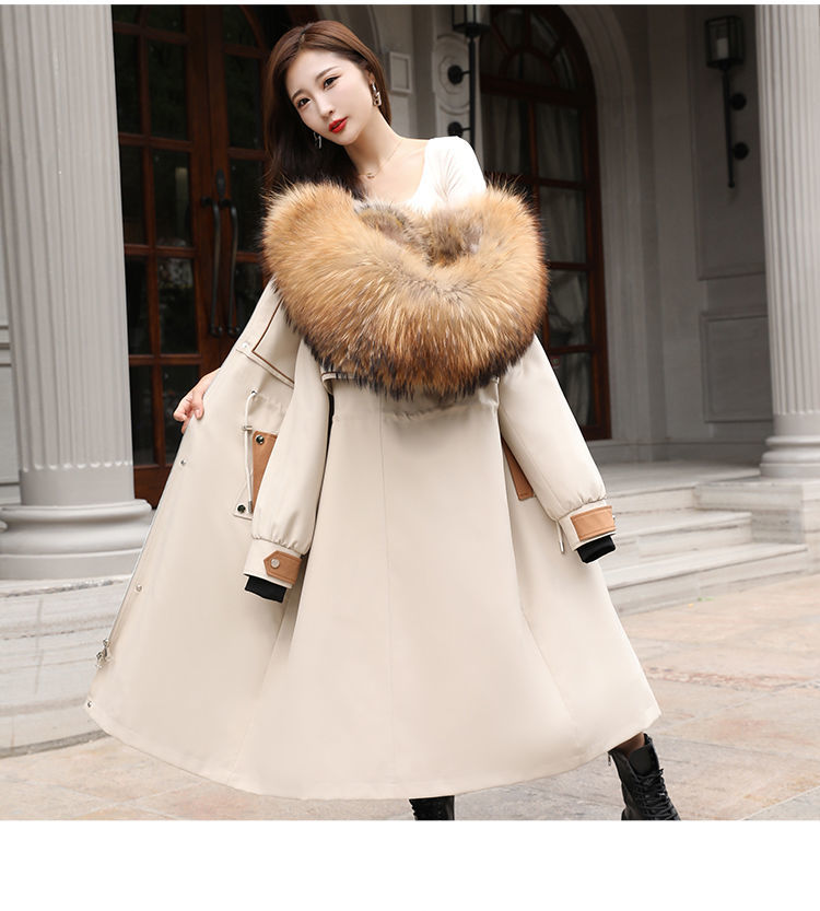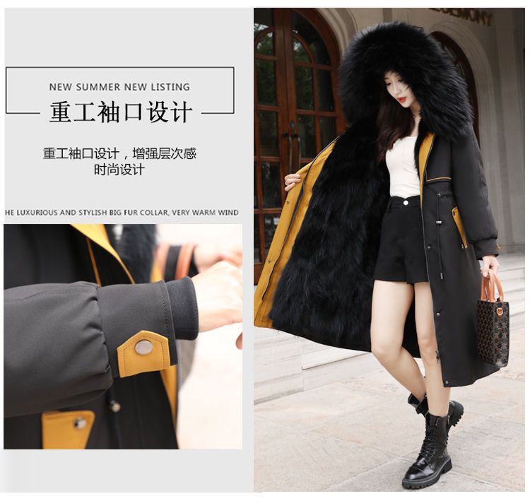 DD-2023新款貉子毛内胆派克服女可拆卸中长款派克服大衣皮外套女冬