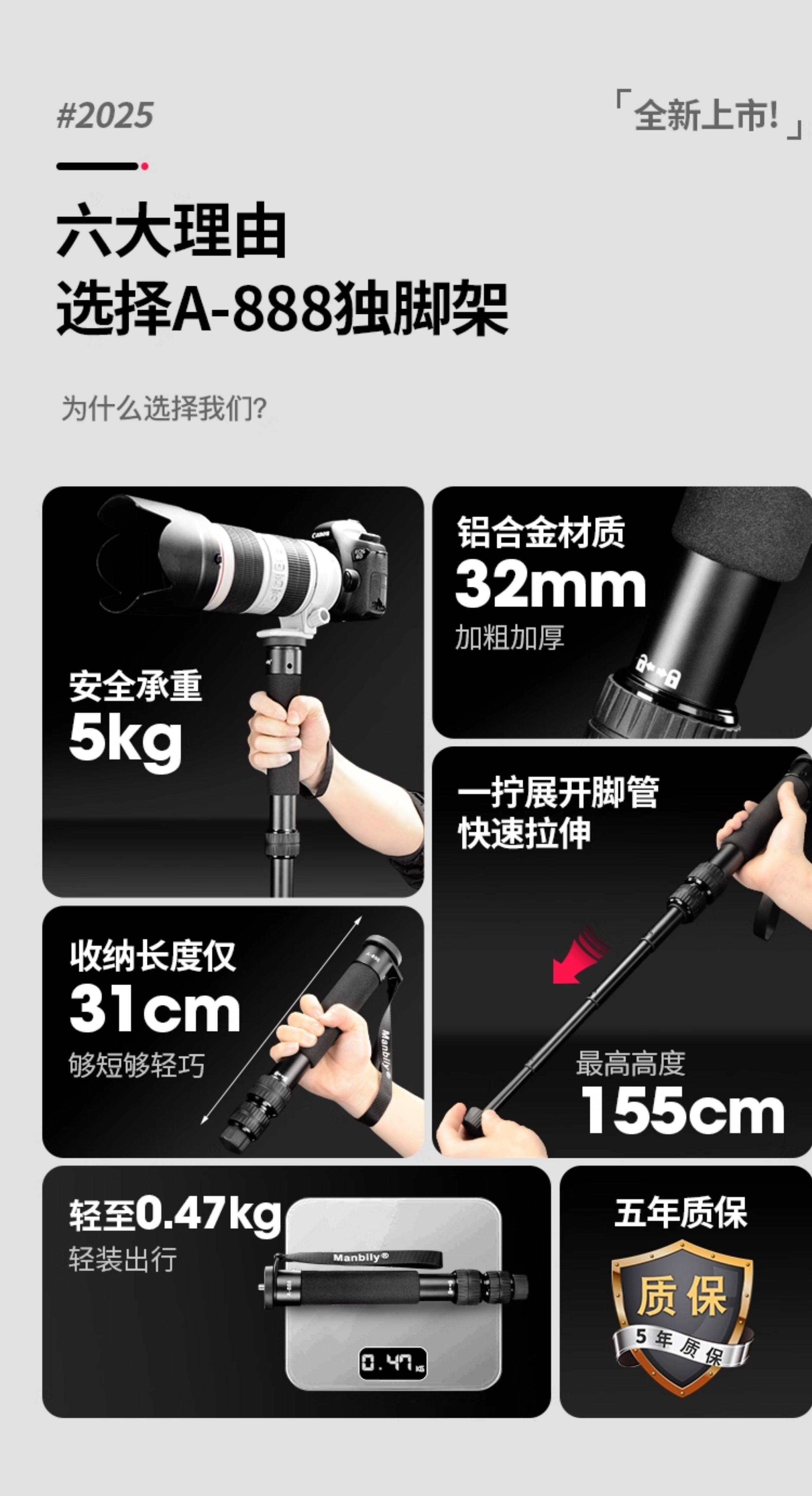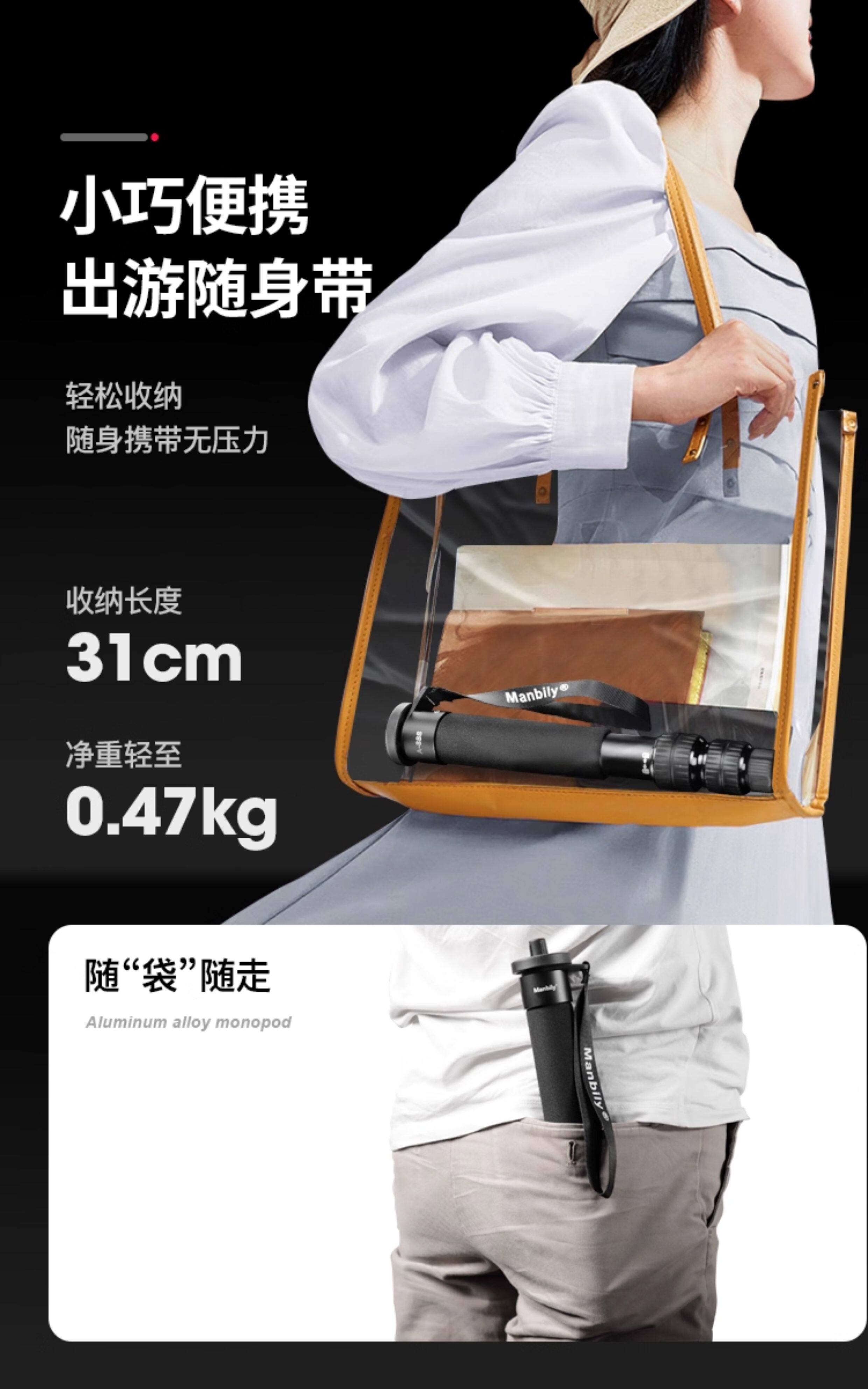 【超短至31CM】曼比利A888轻便携单反手机摄影支架户外婚礼跟拍旅行独脚架