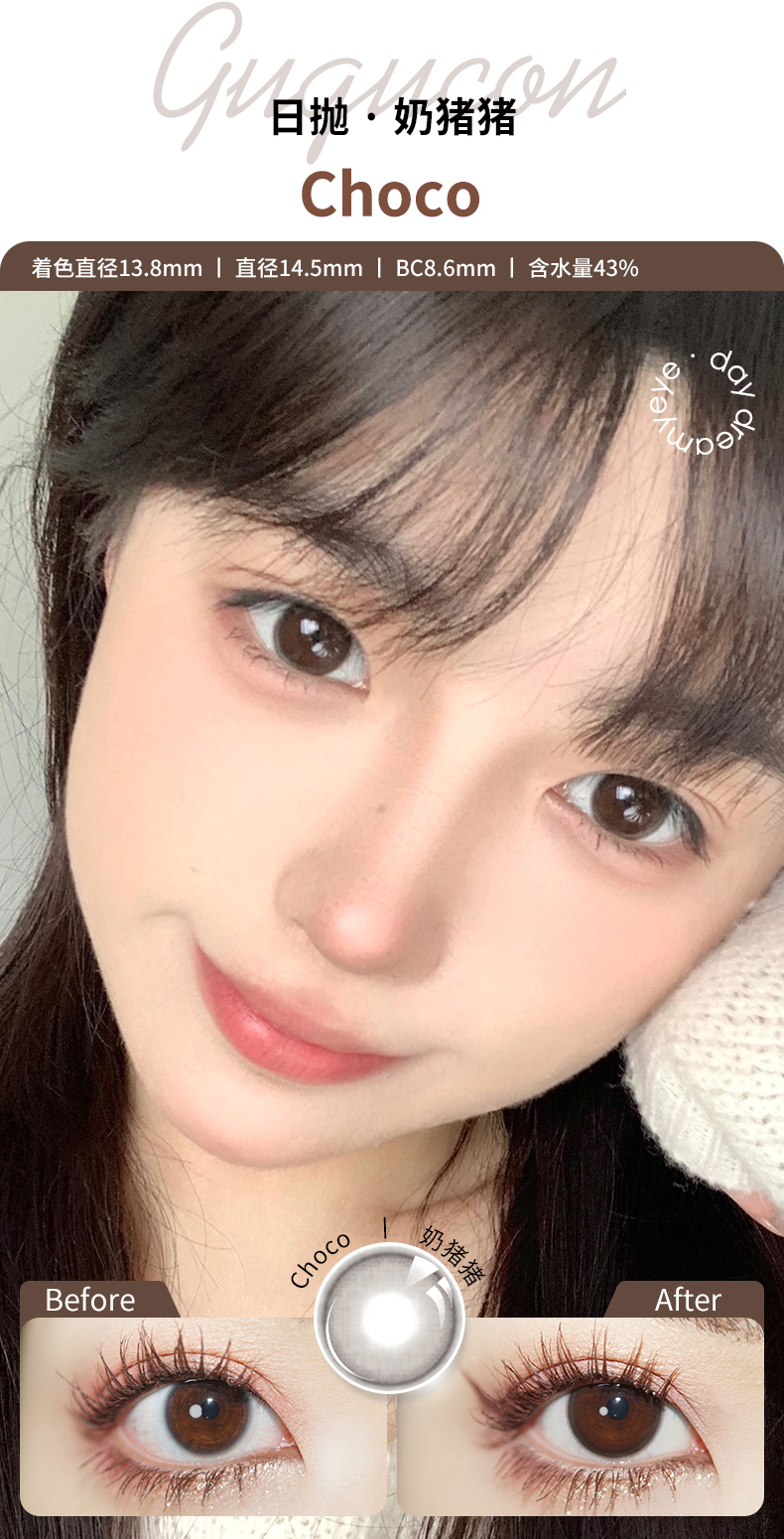 「 10盒均¥59」GUGUCON 日抛 | 黑牛奶/咕咕黑/可可糖/迷糊小熊/浪漫生长/告别暮色/球球巧 共38款