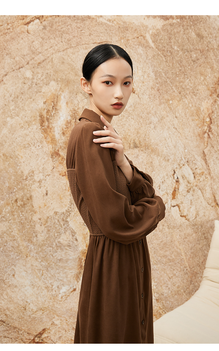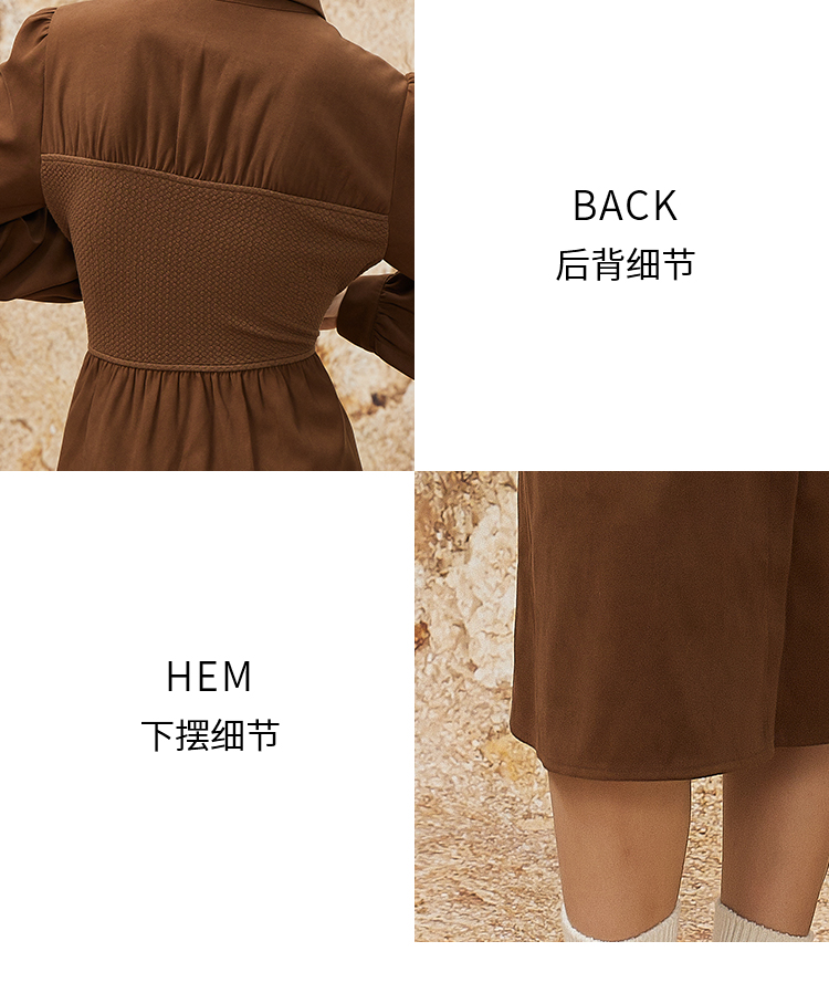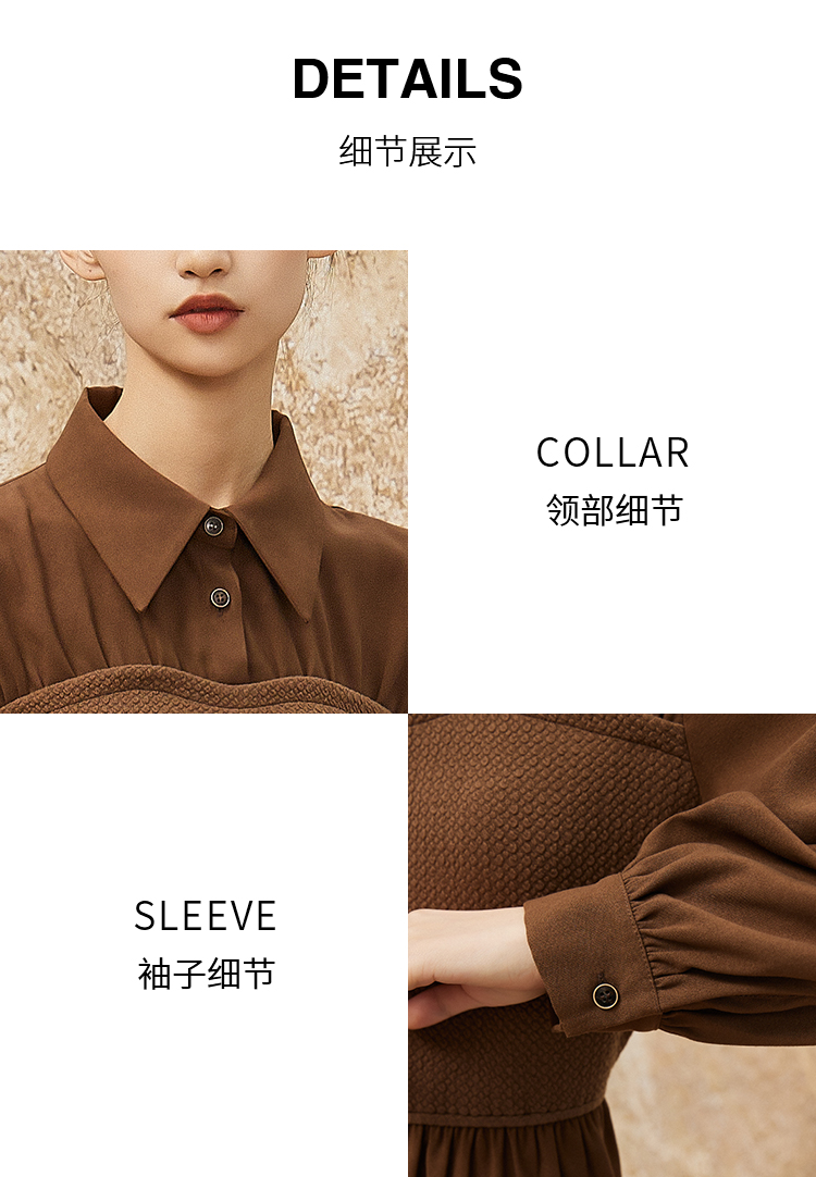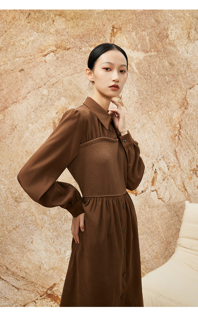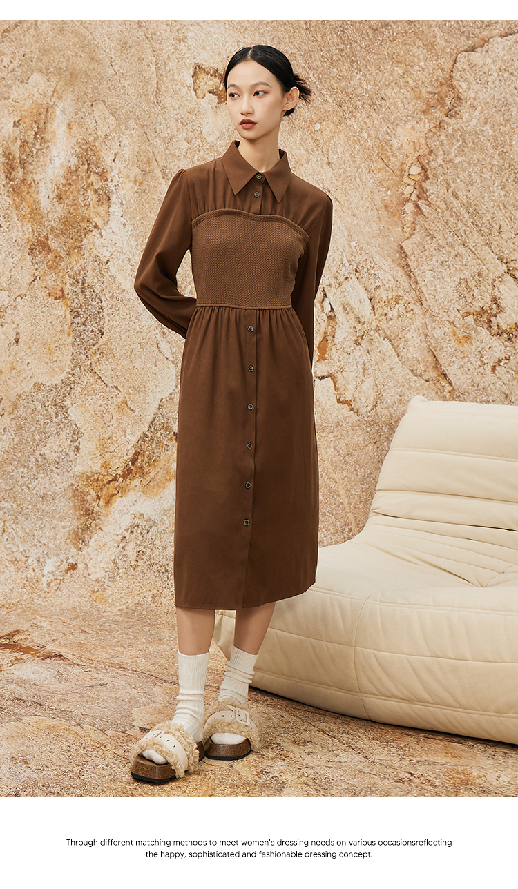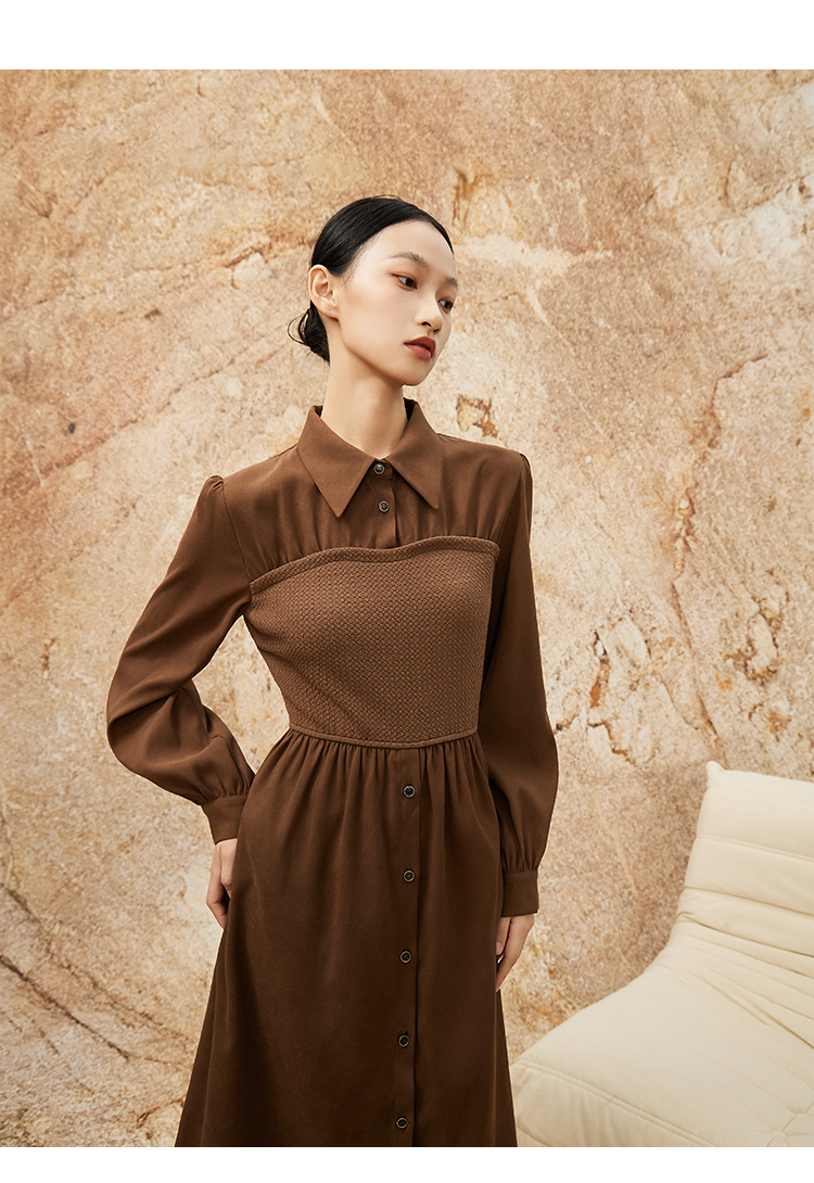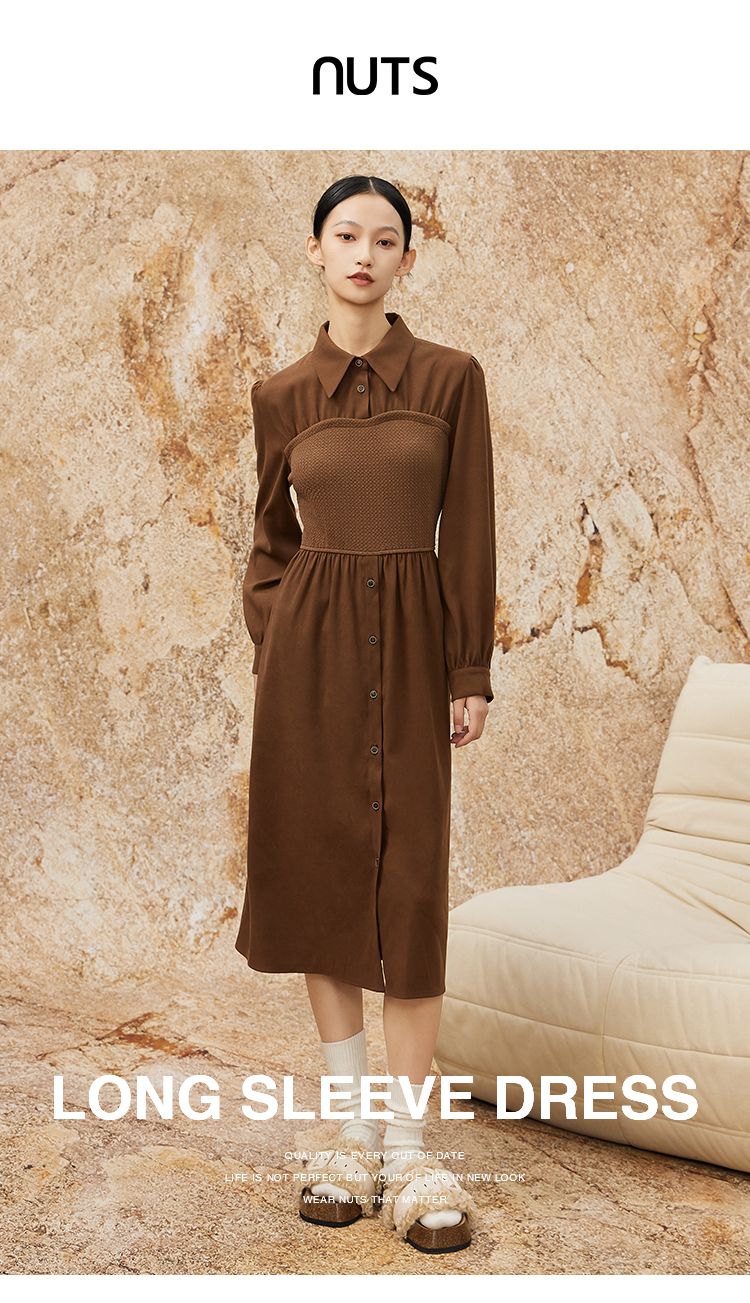 NUTS秋冬款复古气质时尚针织拼接修身衬衫长袖连衣裙女341101090