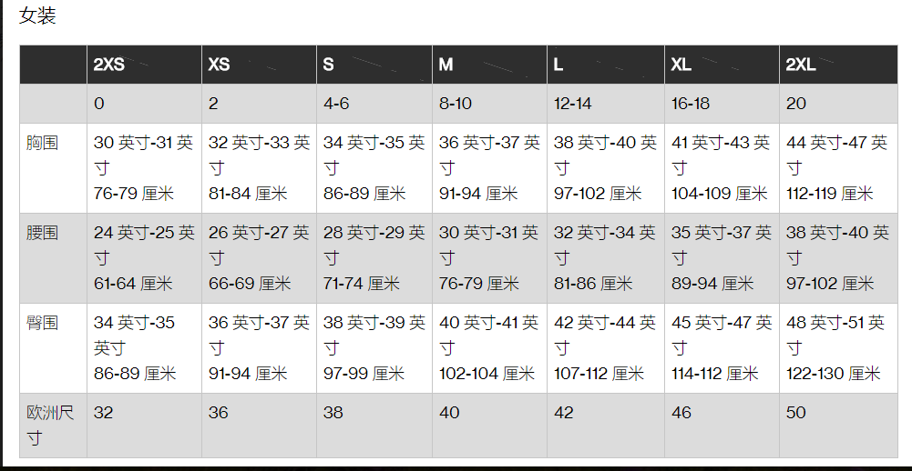 加拿大鹅女士标准款尺码参照