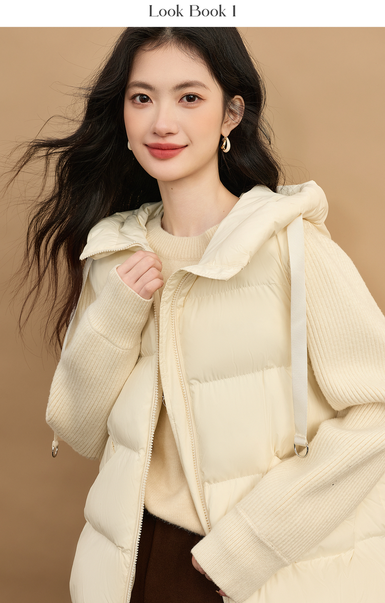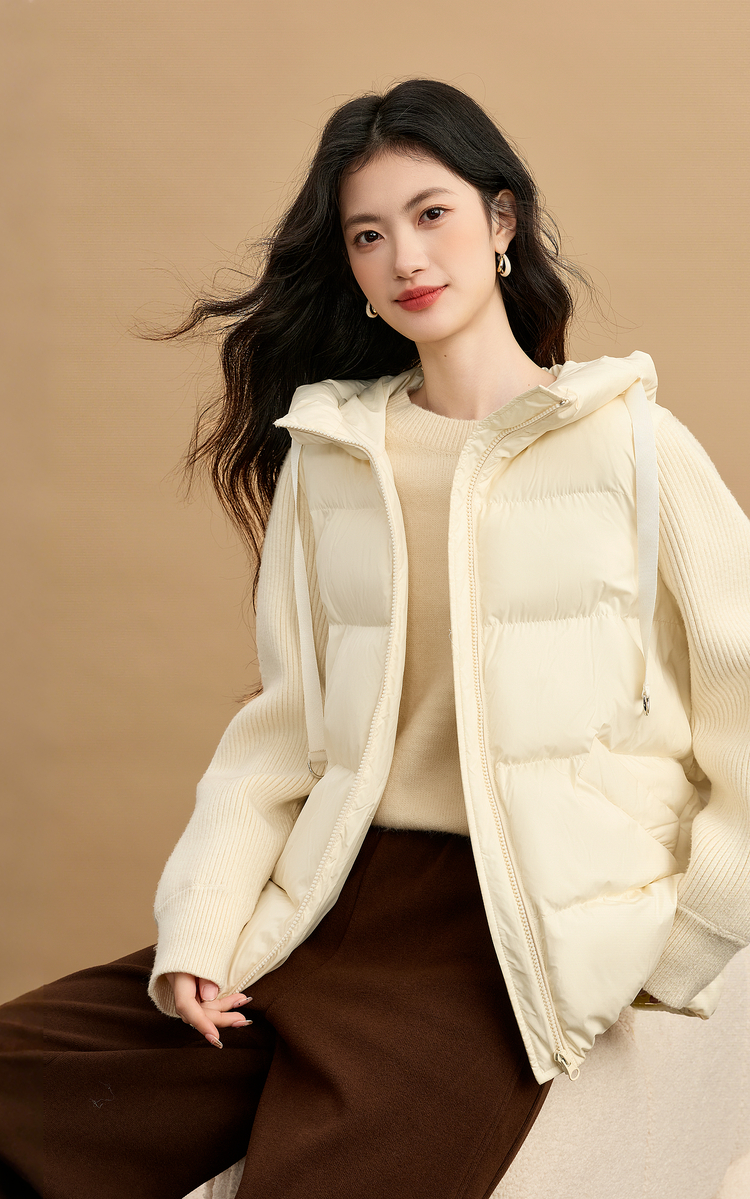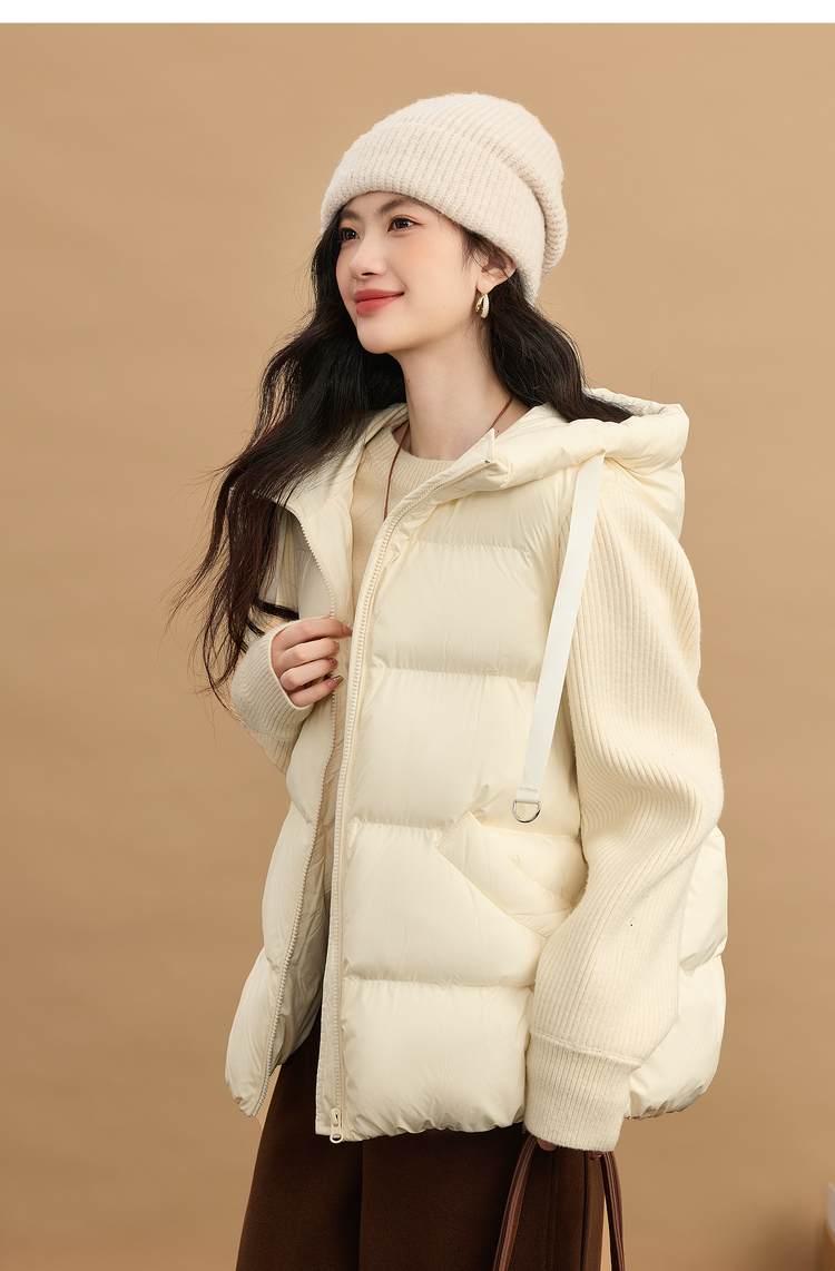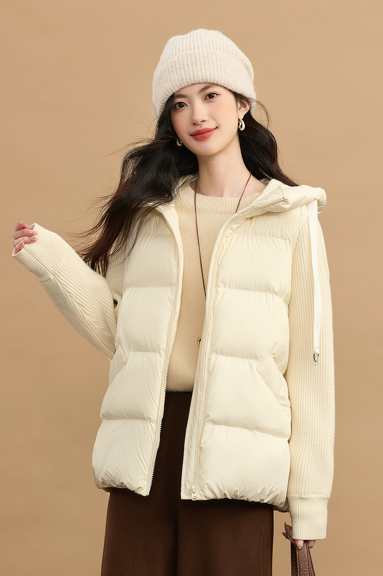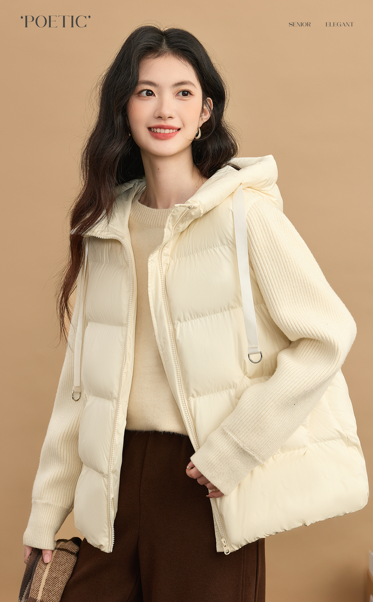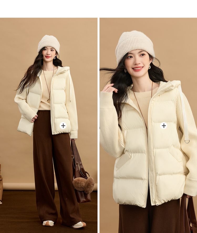 【年货节】熙世界巨好看的冬装假两件针织拼接长袖连帽棉服外套女2025年新款