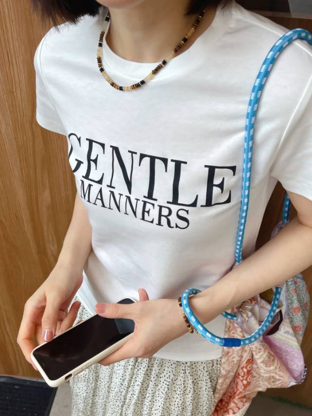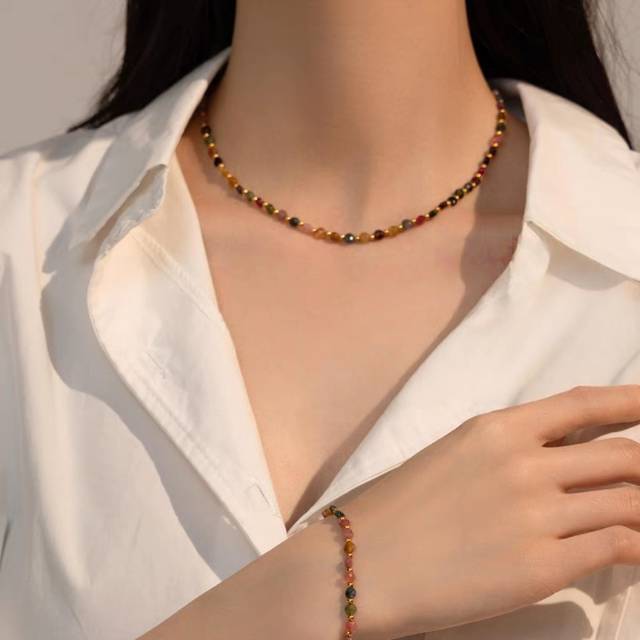 串珠项链与手链搭配简单的吊带、T恤都很美