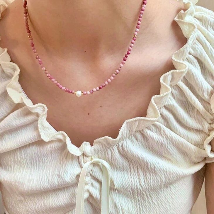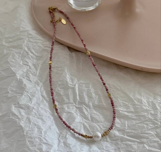 少女心巴洛克珍珠蔷薇粉项链