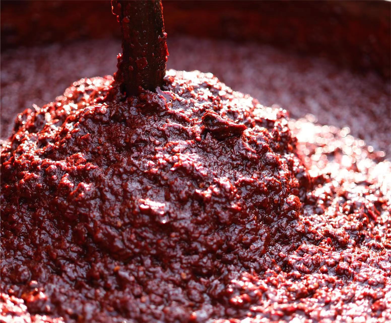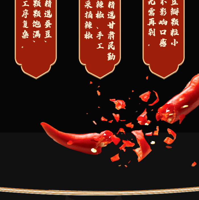 相比于市场上用生蚕豆制作的豆瓣酱,蒸熟的蚕豆会带上木头的清香,在后期发酵过程中蚕豆的淀粉能够得到充分的分解,也更易化渣,与辣椒更好的融合,鲜香味十足。就算空口吃都是满口浓郁的酱香、回味甘甜不刺激,远非普通豆瓣酱可比。