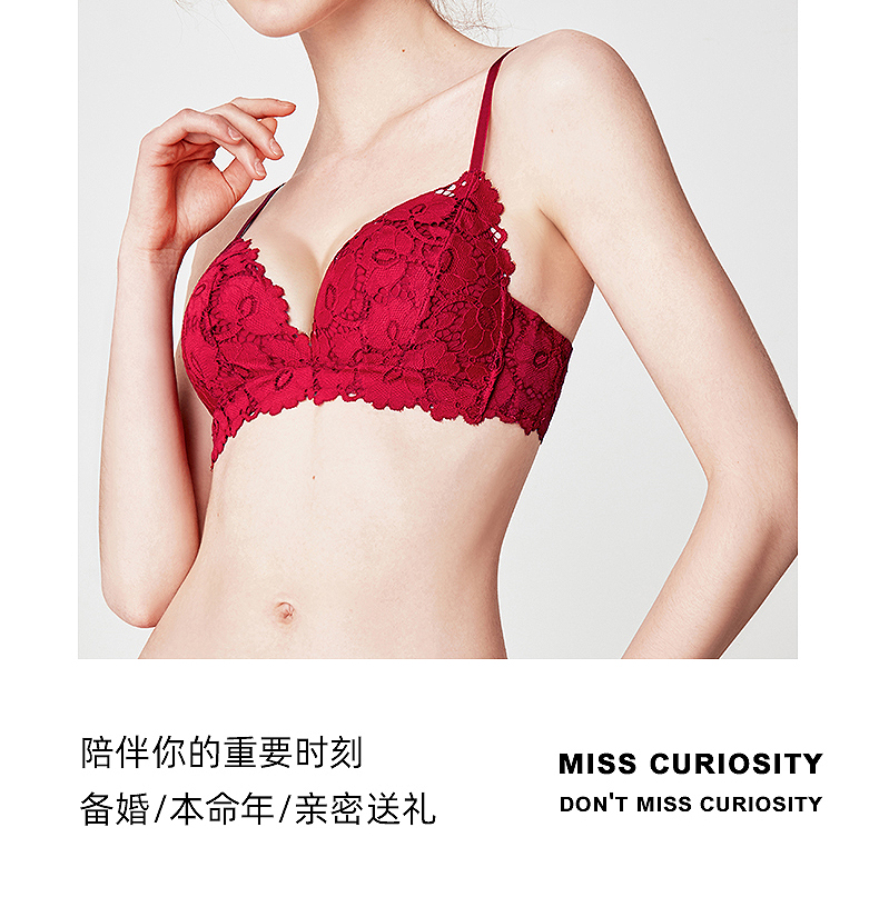 小胸聚拢好奇蜜斯蕾丝内衣女小胸聚拢无钢圈文胸套装性感法式胸罩夏季薄款寇莉