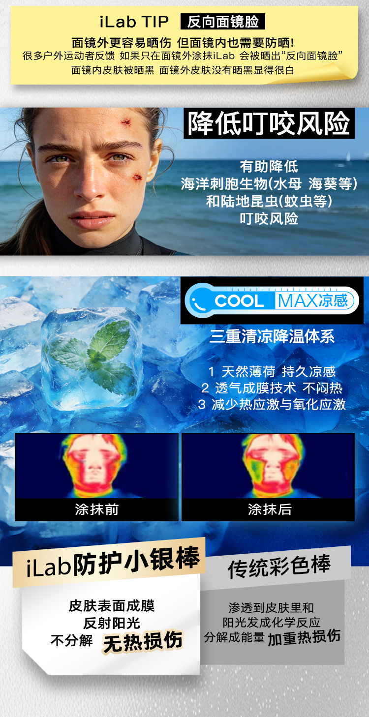 iLab艾莱博亮彩色小银棒(防护棒/运动泥/彩妆棒)冰爽/防水防汗