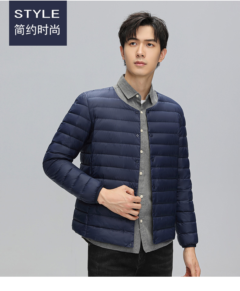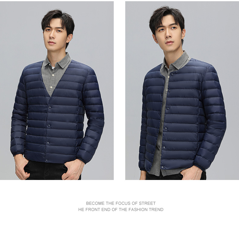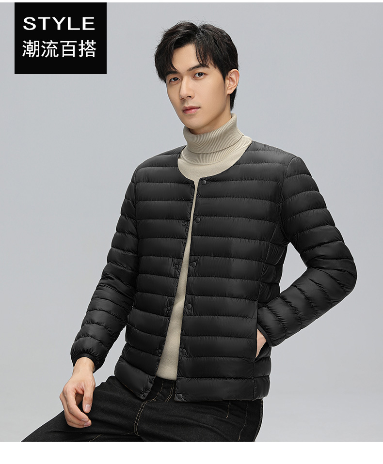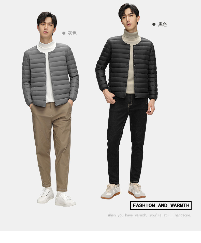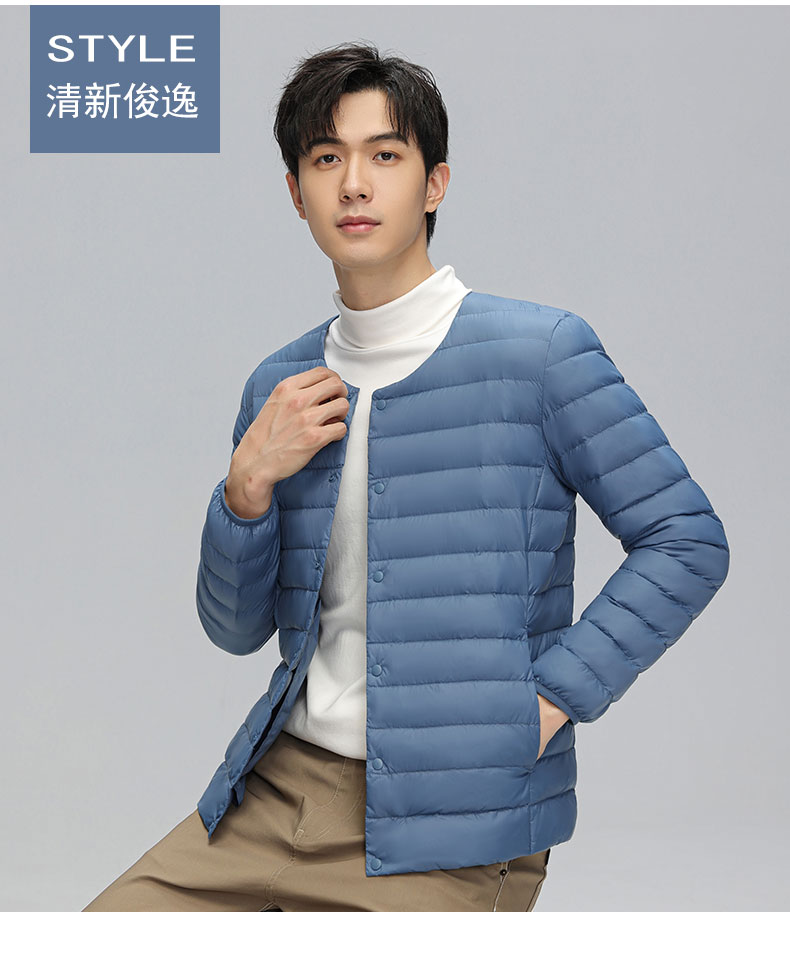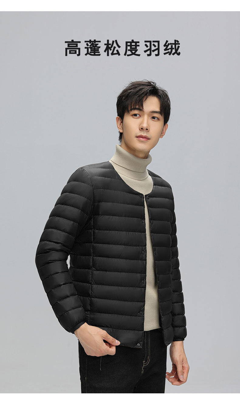 半身缘男装 冬季内穿保暖无领轻薄打底羽绒内胆外套羽绒服02033
