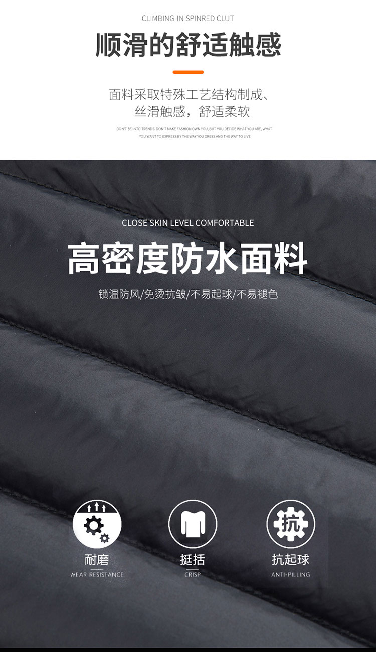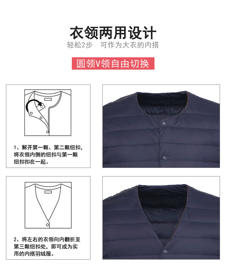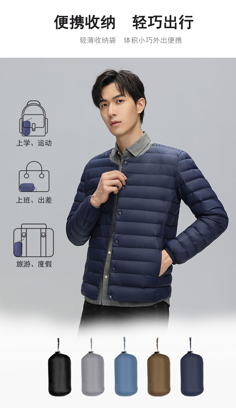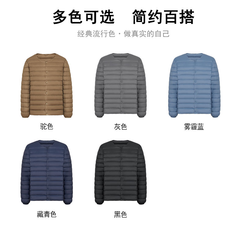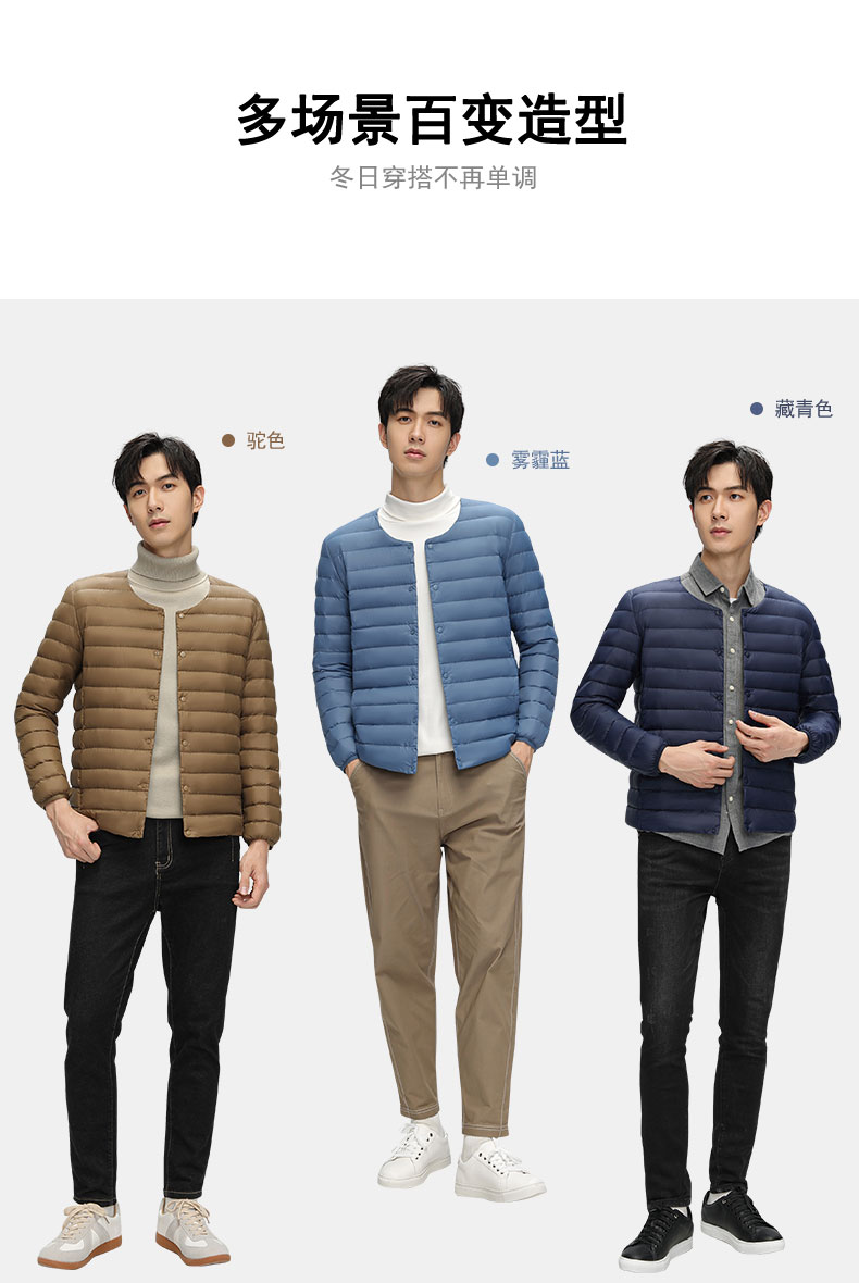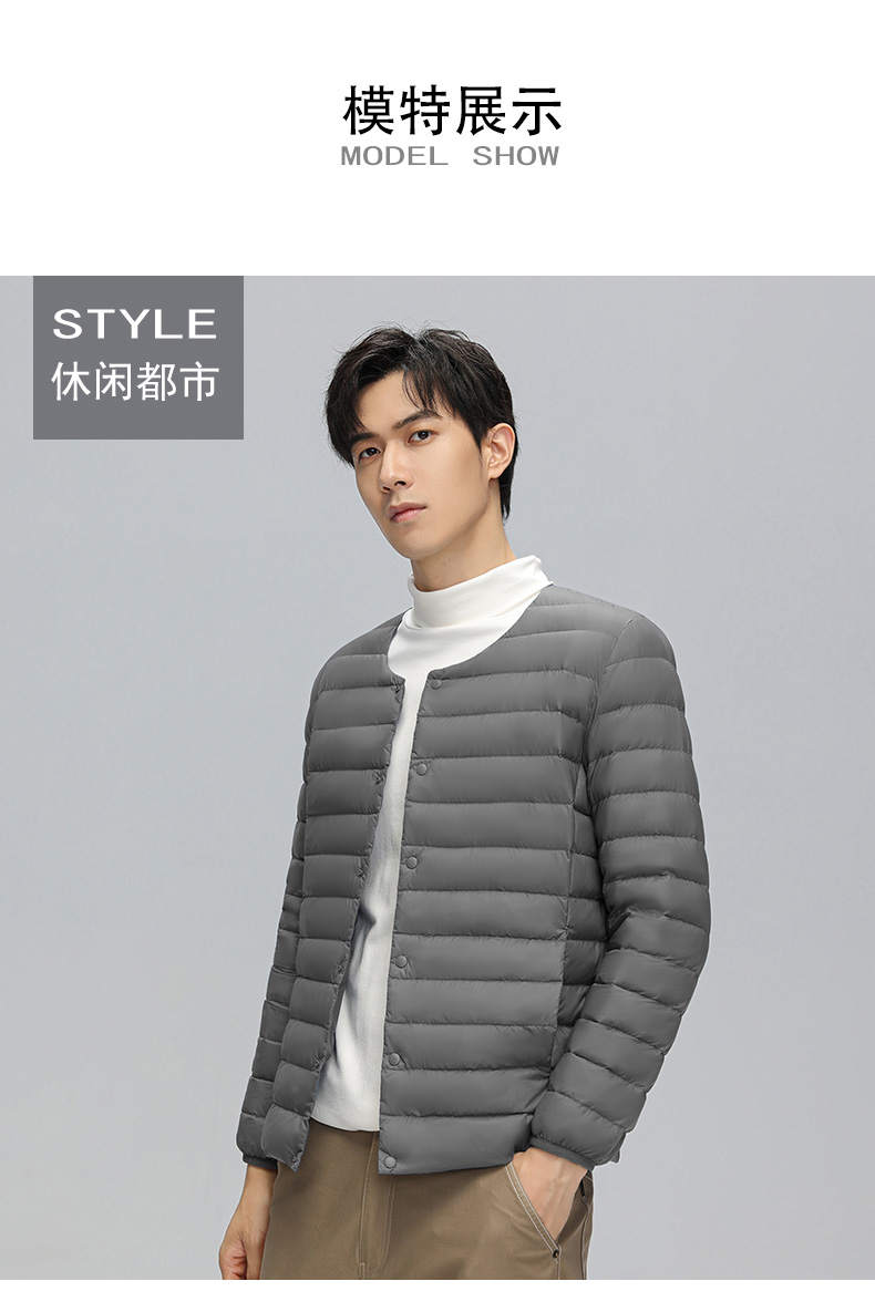 半身缘男装 冬季内穿保暖无领轻薄打底羽绒内胆外套羽绒服02033