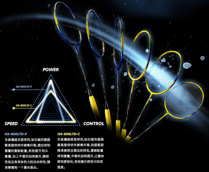 拍框材质:超高刚性碳纤维+纳米树脂+Ultra Carbon Nano Fiber+HARD CORED TECHNOLOGY