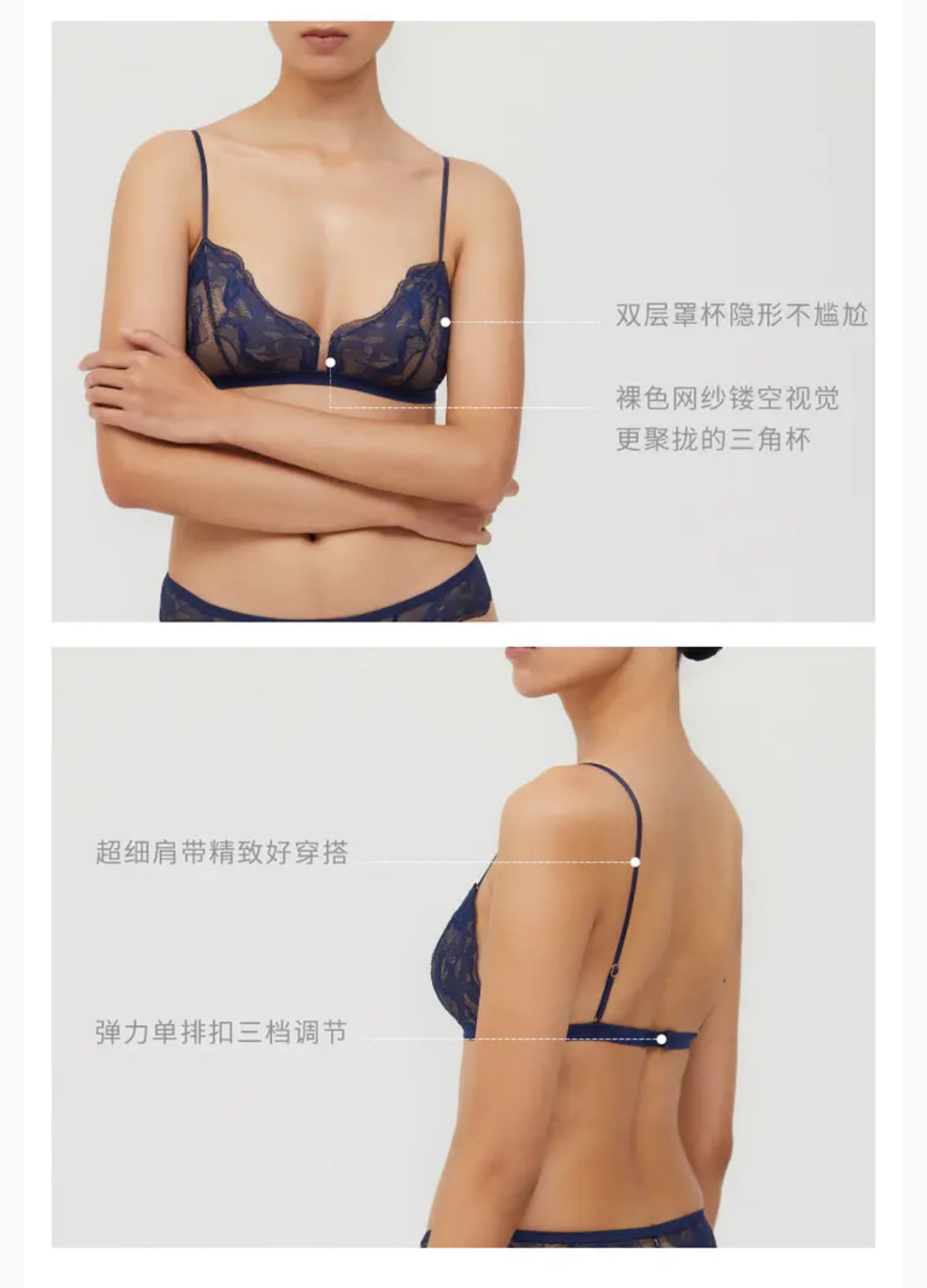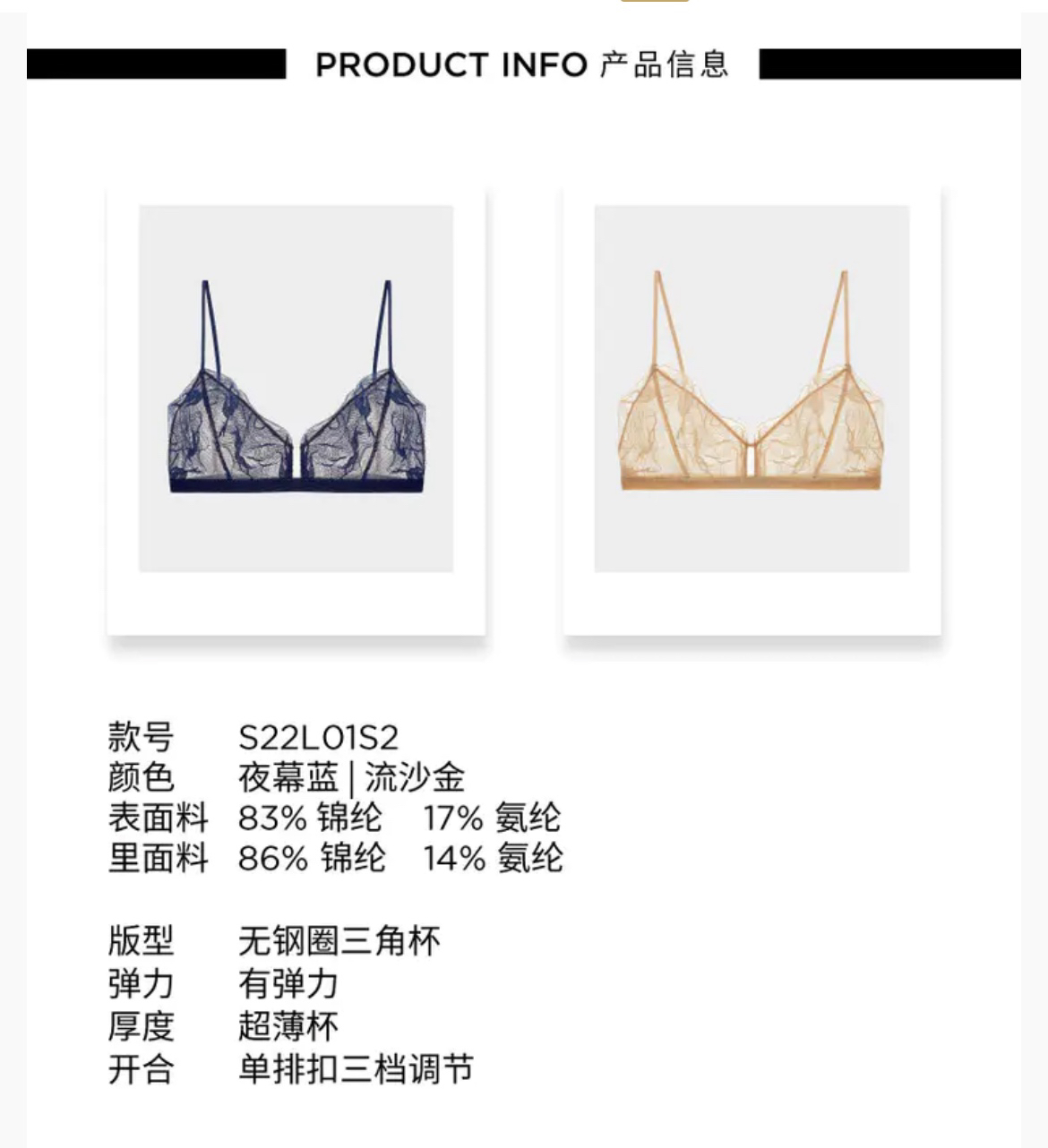 LOAM|涟漪 Triangle 蕾丝三角杯无钢圈 [ 夜幕蓝 / 流金沙 ]