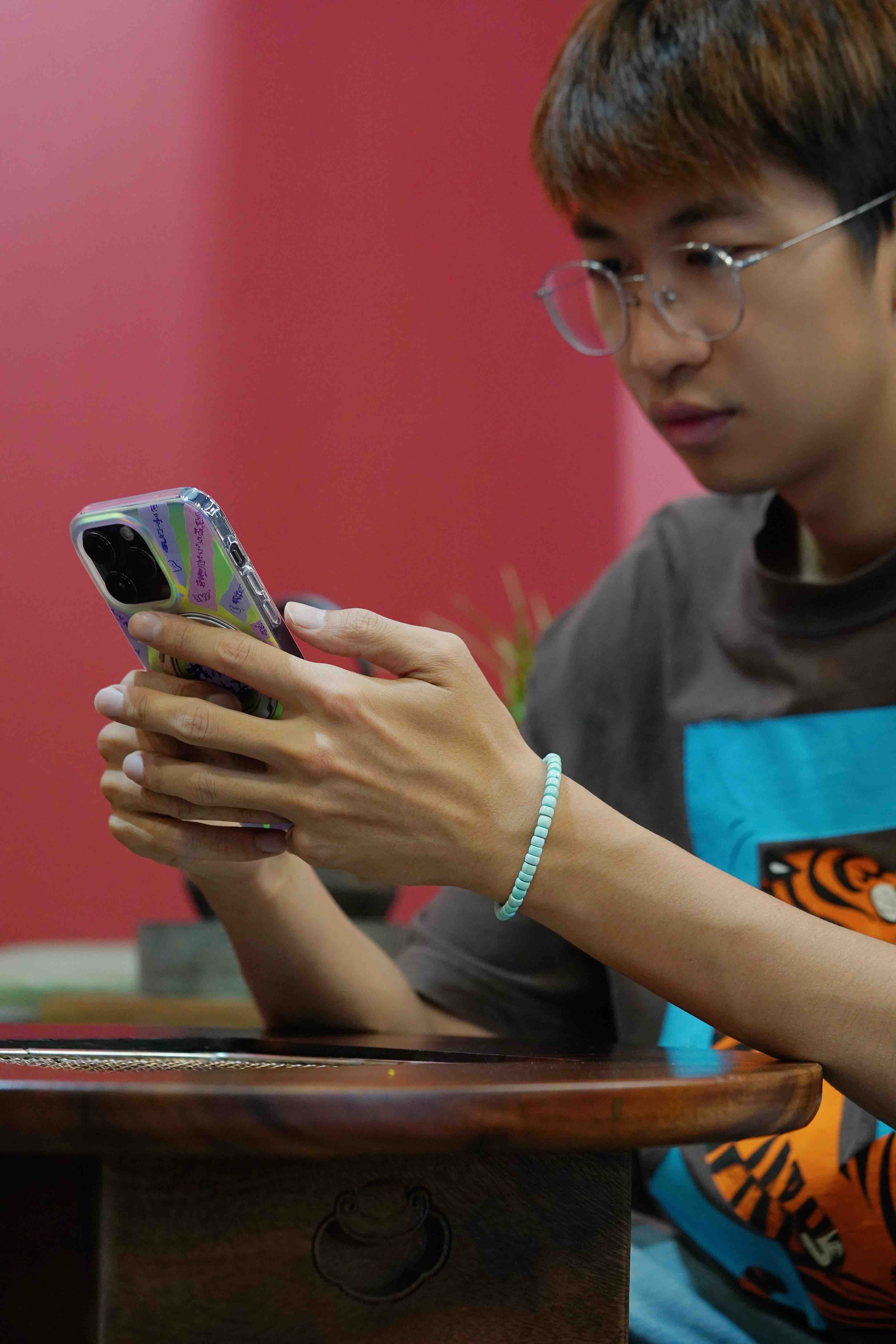 但你仔细看他戴的绿松品质并不高,