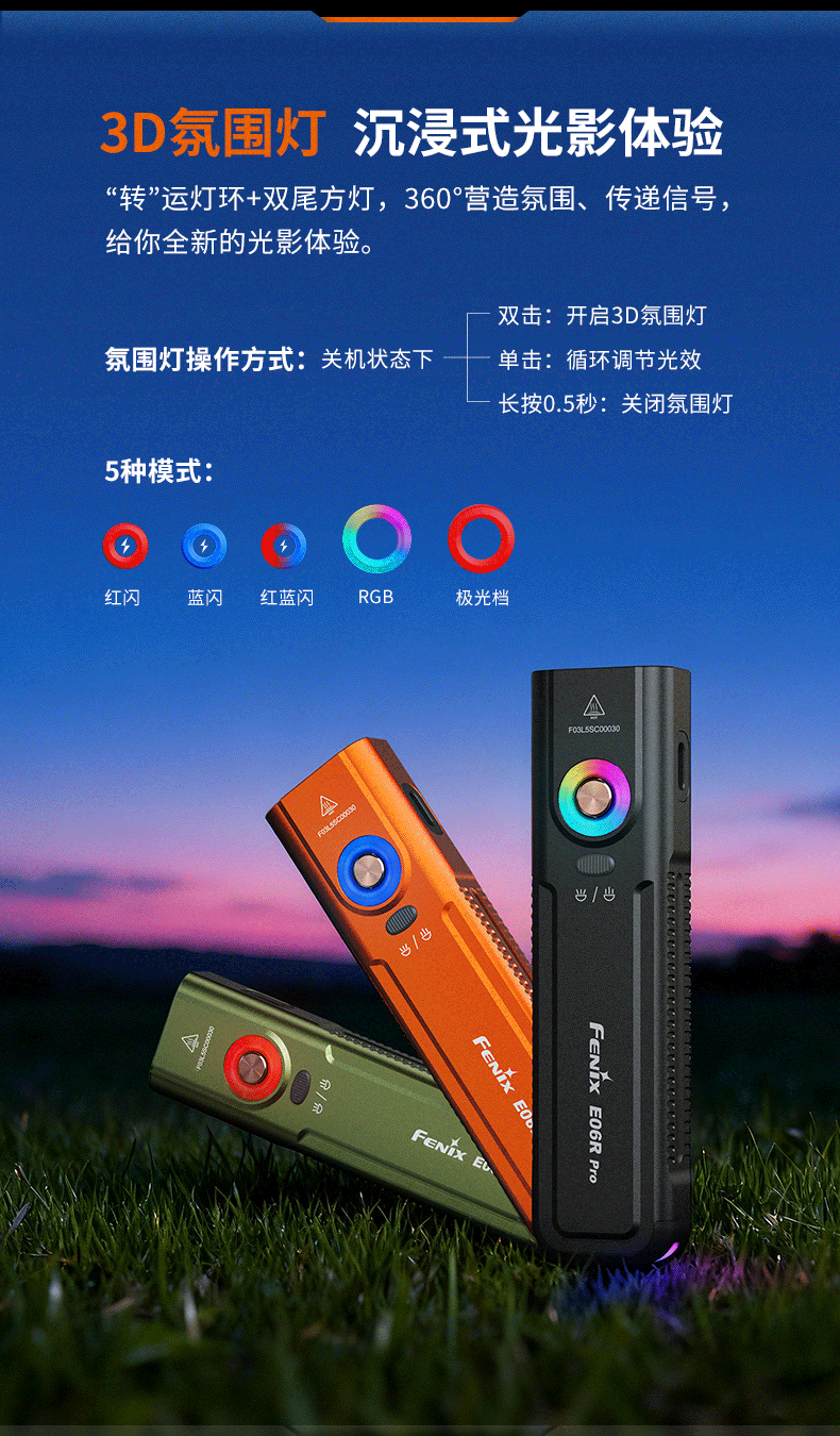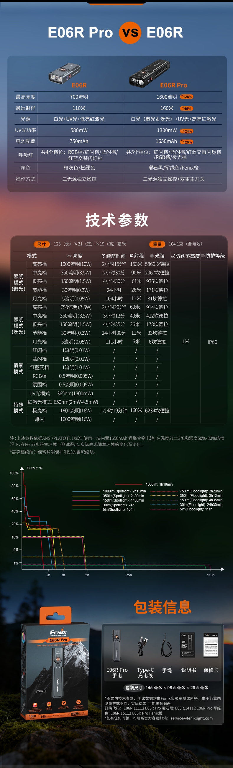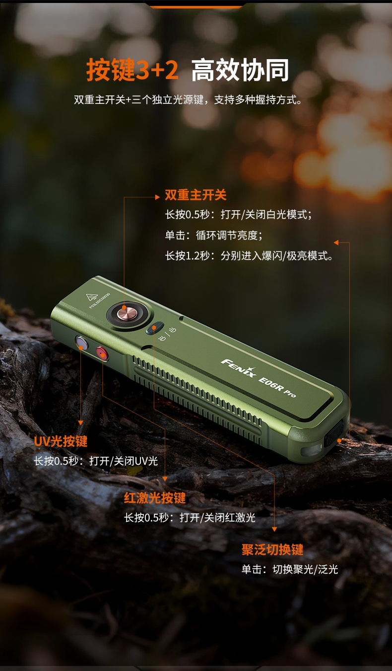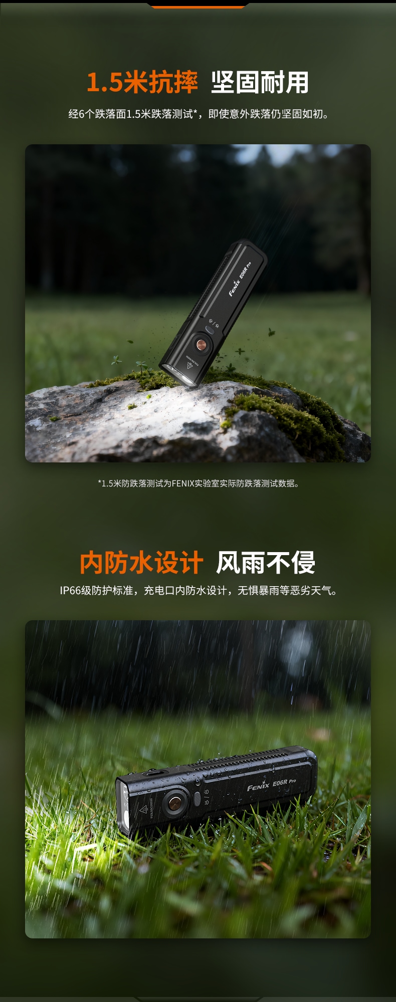 Fenix菲尼克斯E06R PRO扁筒高亮1600流明多光源双控开关手电筒