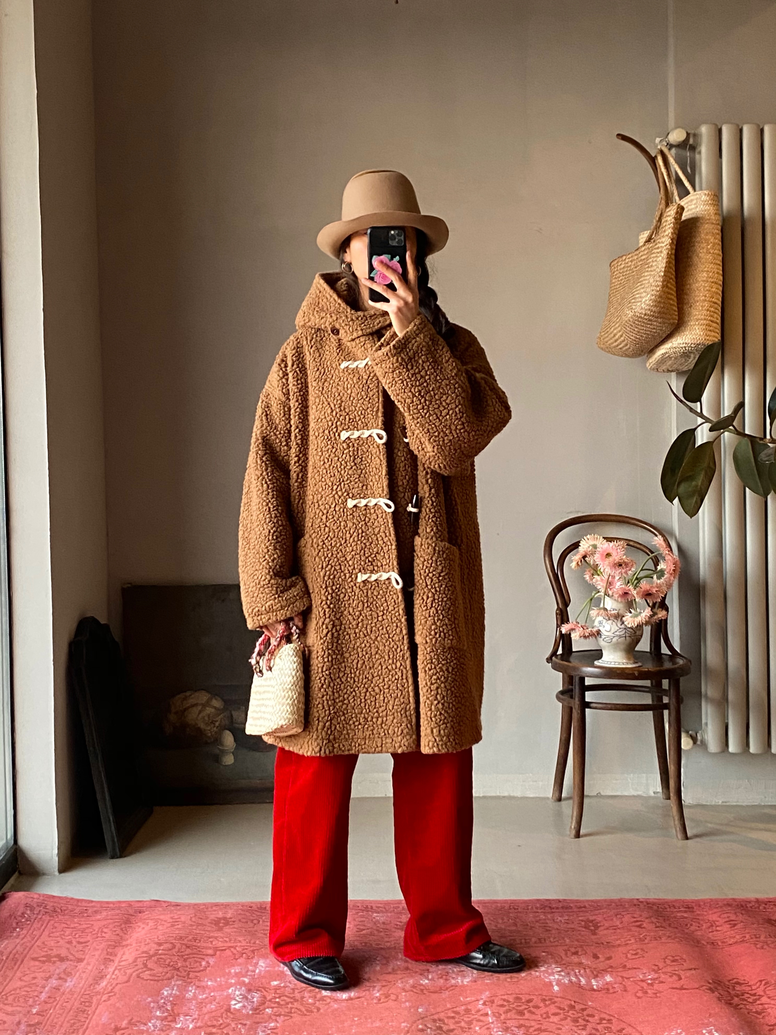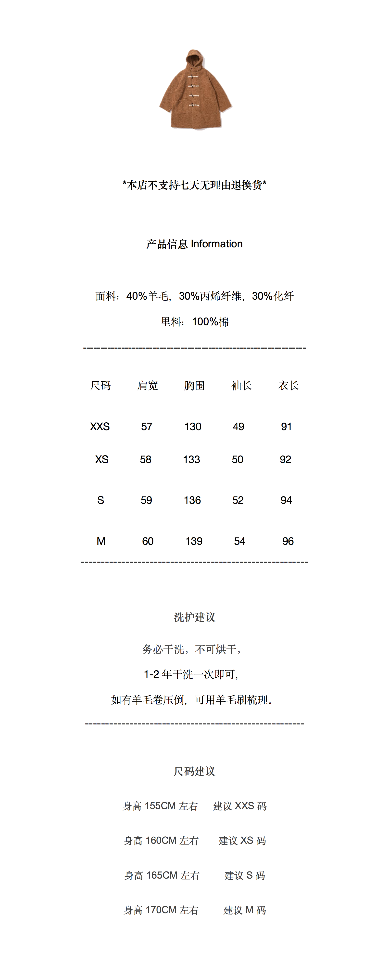 面料来自意大利,软糯卷曲,温暖十足。宽松阔形,包容身材。可长久陪伴。