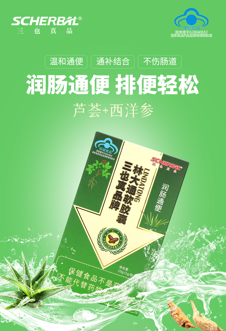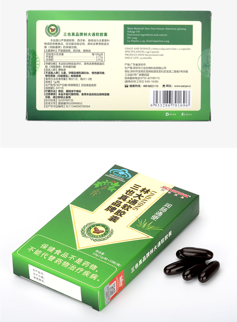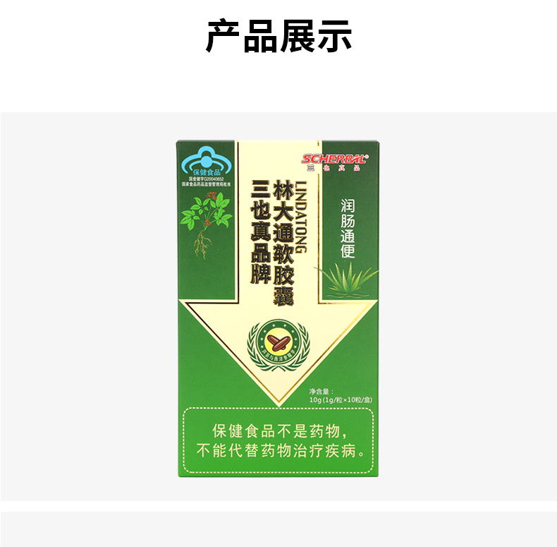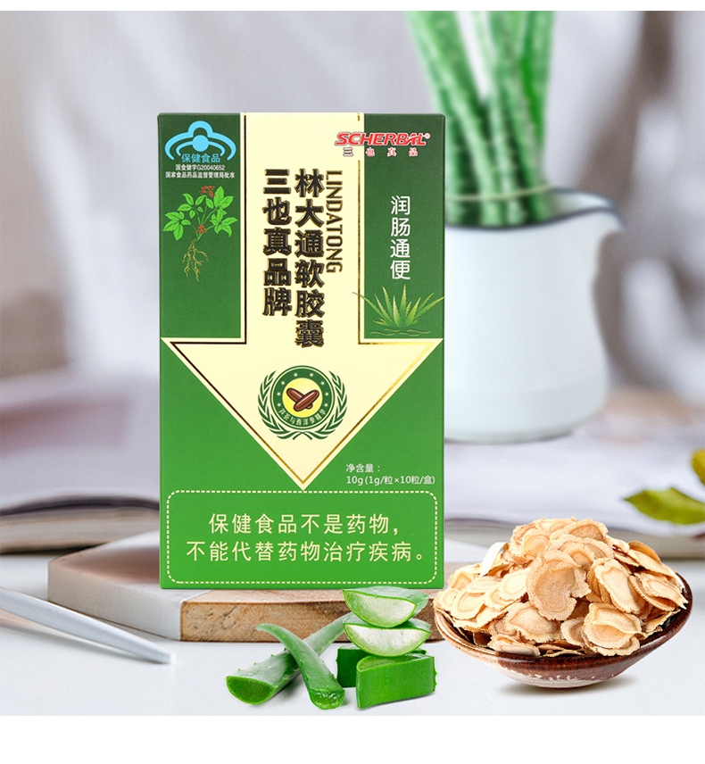 三也真品牌林大通软胶囊 1g/粒*10粒/盒 芦荟加西洋参 改善胃肠道功能(润肠通便)