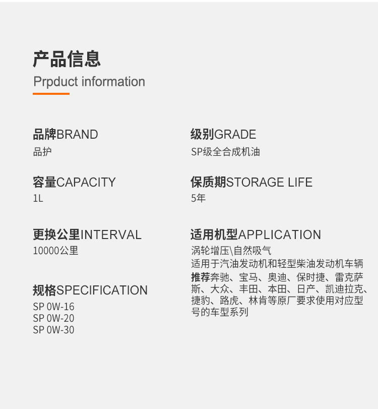 品护S900 SP级0W-20/0W-30全合成高品质保真四季机油 一万公里润滑保护