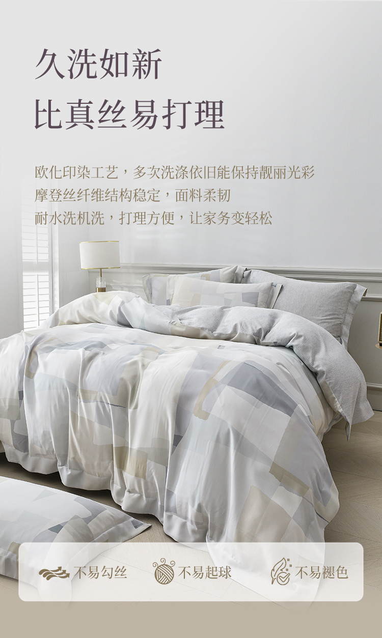 2025年春季新款雅芳婷60支摩登丝四件套床笠款现代简约风被套套件
