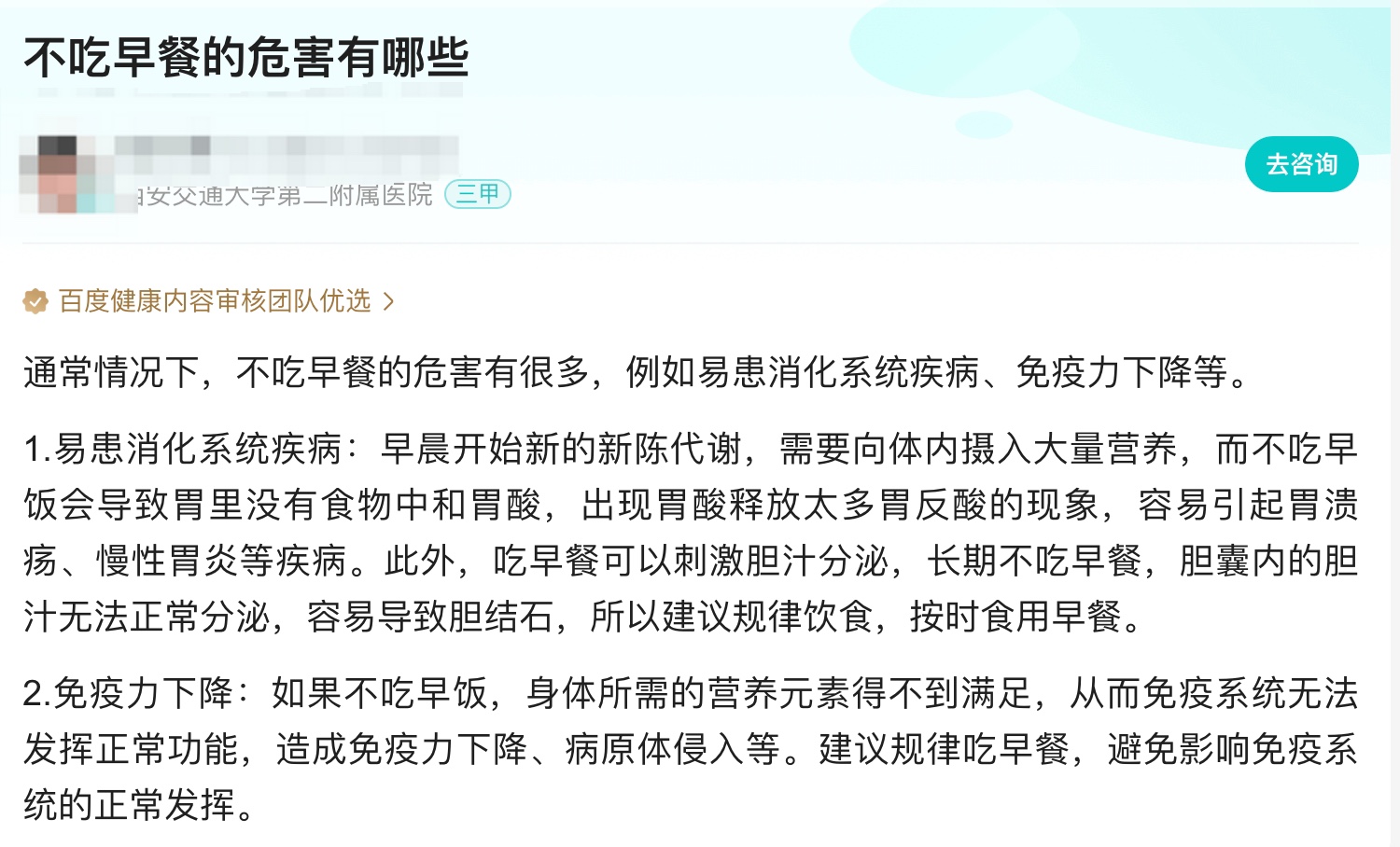 但不吃早饭是不行的,医生明确指出,不吃早饭会引起低血糖、免疫力下降以及胆结石