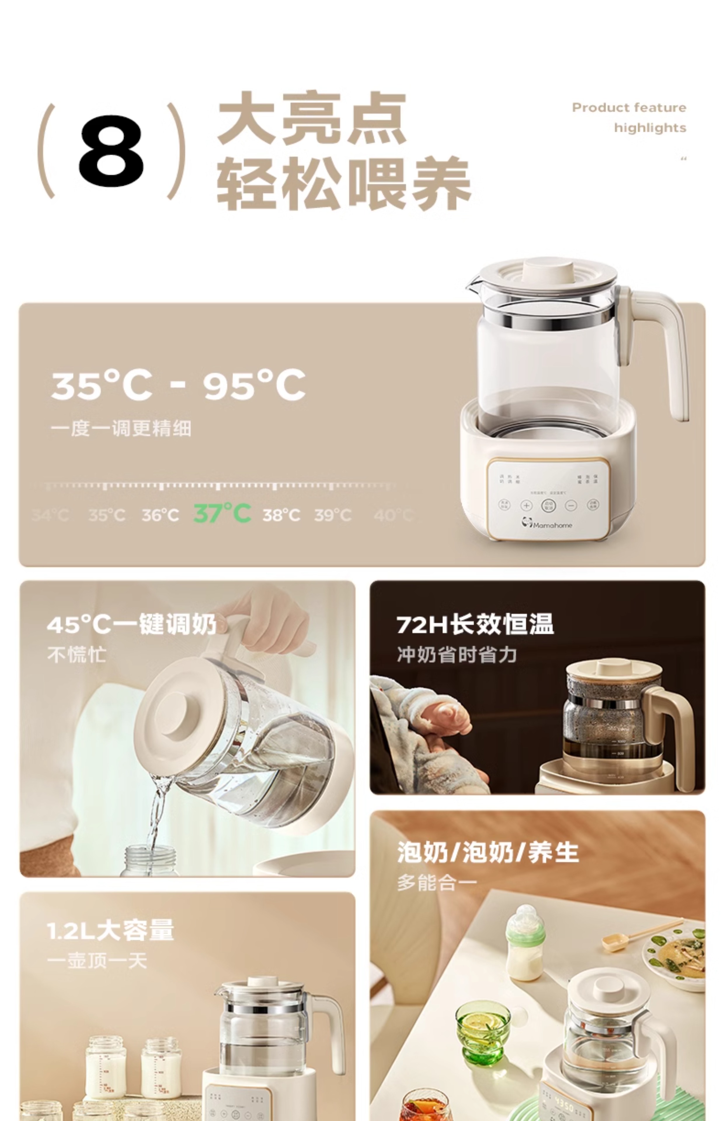 Mamahome恒温壶婴儿冲奶电热水壶保温烧水壶 调奶器k312