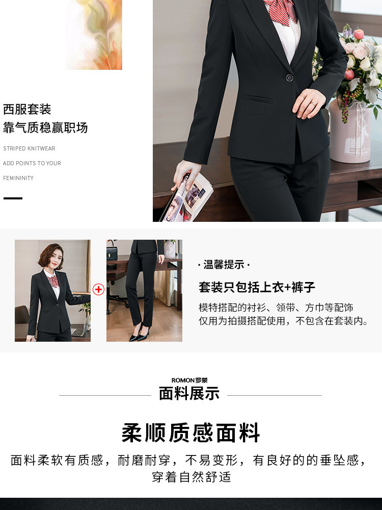 【上衣+裤子】罗蒙西服套装女春夏商务通勤修身显瘦一粒扣白领职业装