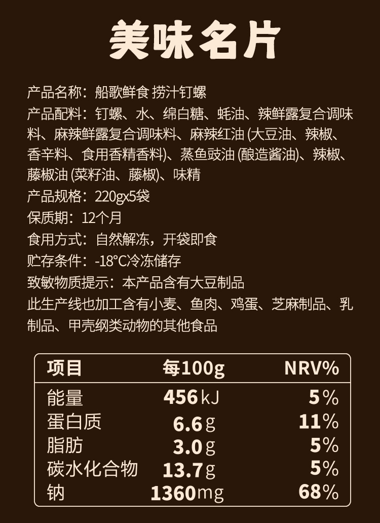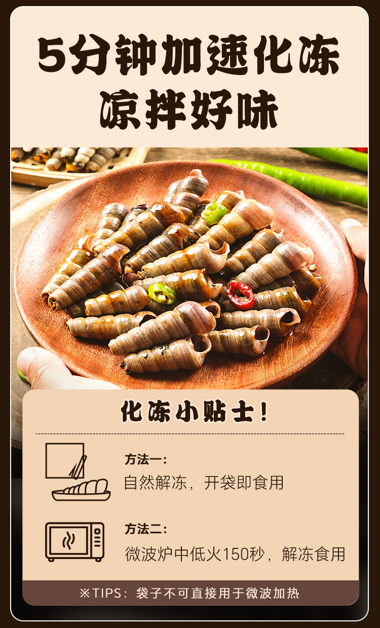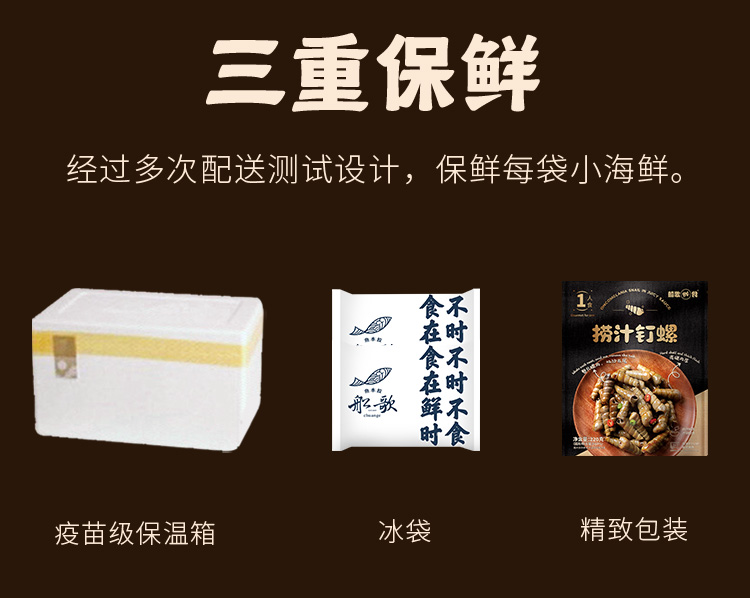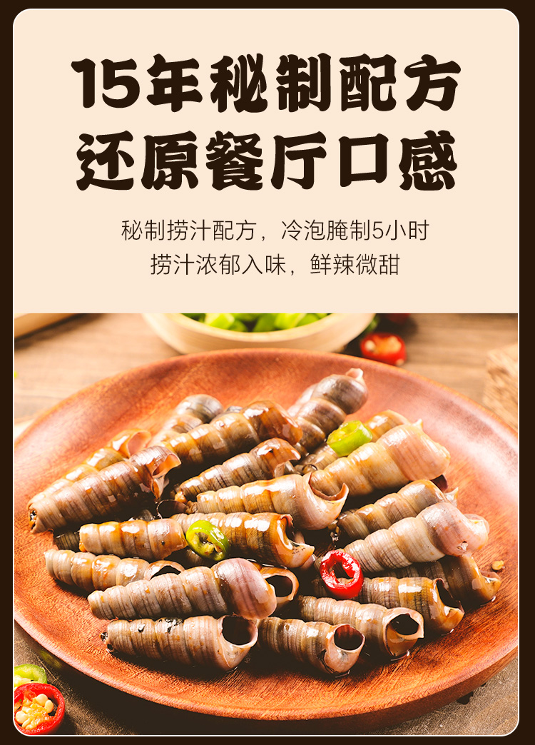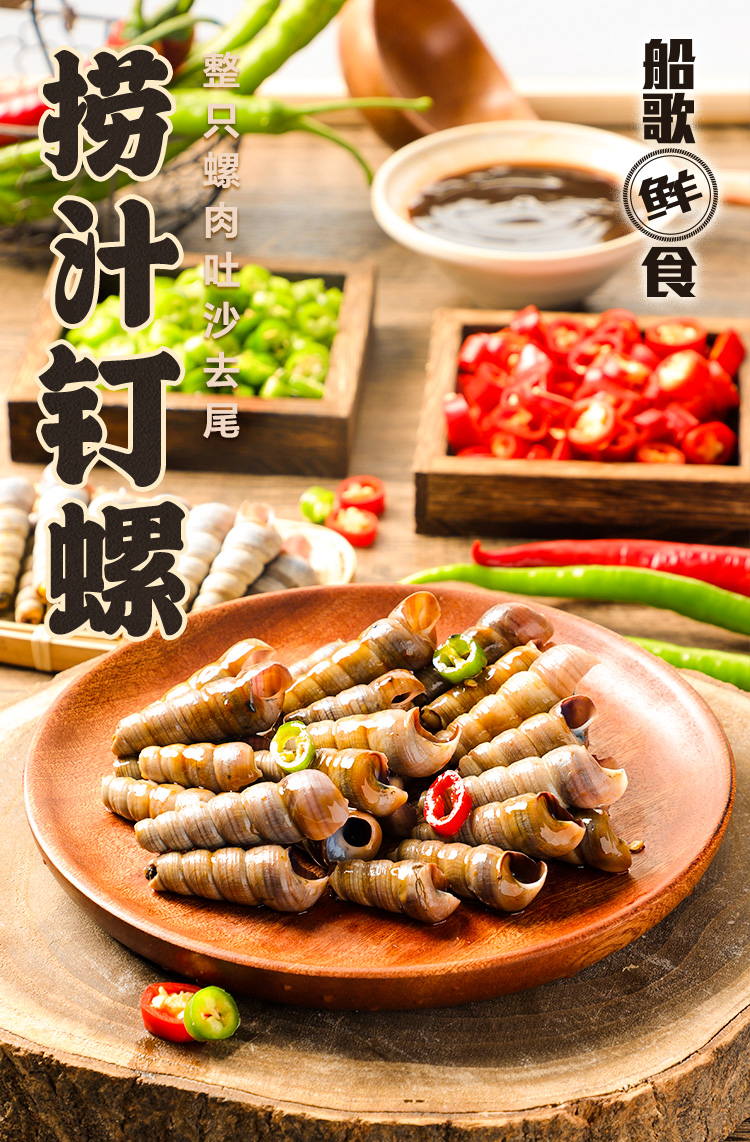 船歌鲜食香辣捞汁钉螺解冻即食海鲜方便速食220g*5袋简装