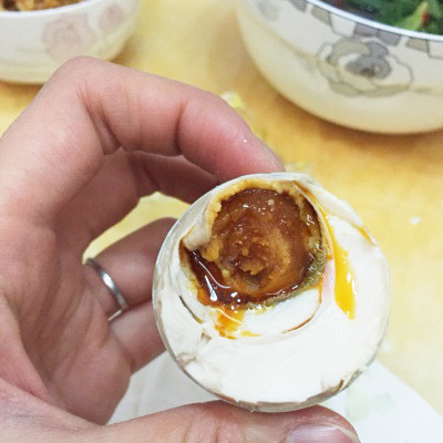 蛋黄松沙细腻如蟹黄,绵软爽滑蛋中透红,筷子轻轻一挑,满满黄油涌泉而出,油而不腻,清香飘逸,吃上一口,咸香适中,回味余长。蛋白茶色,蛋白入口鲜嫩,酥软即化。