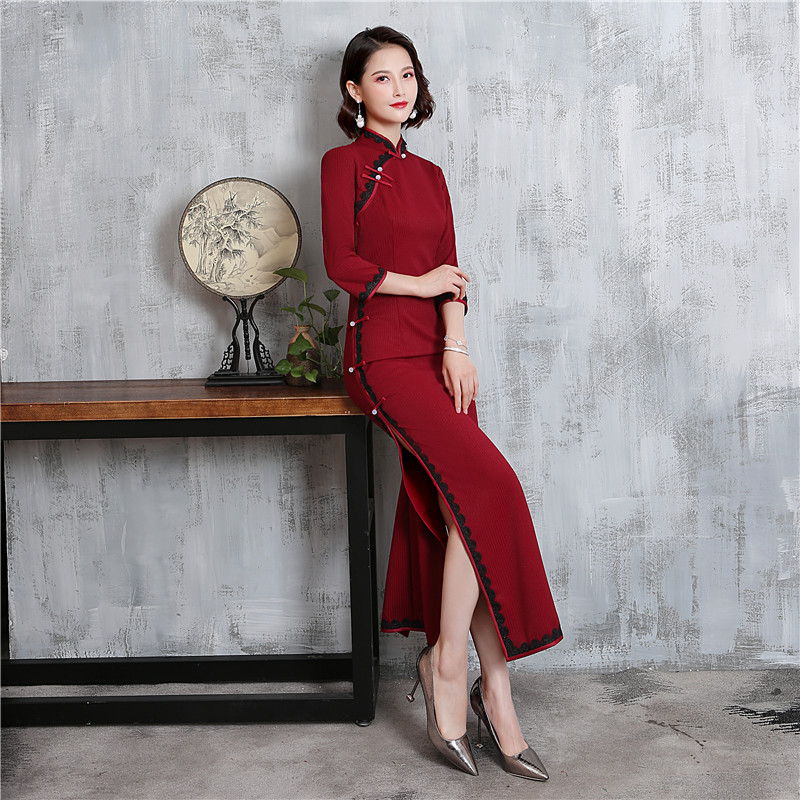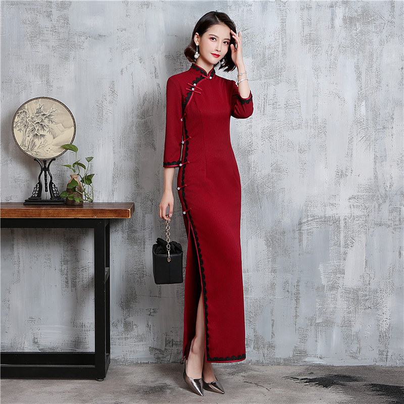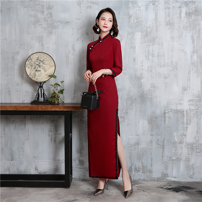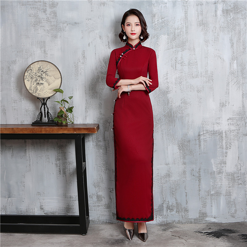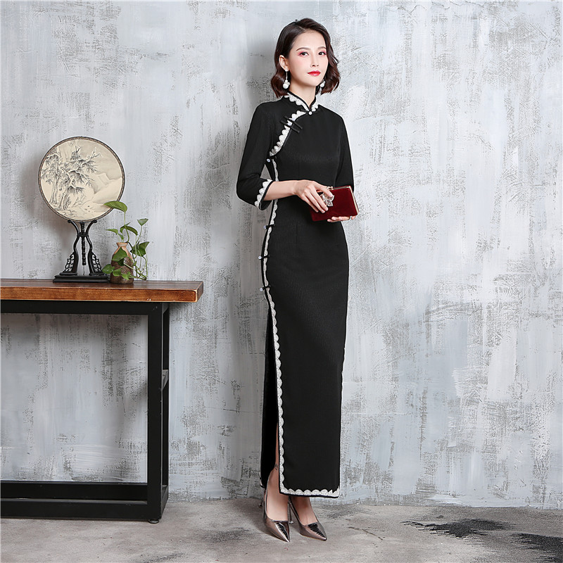 产品特点:2019冬季新款长款旗袍,面料舒适,质感柔软,垂感好,不缩水,不褪色,不起球,轻微弹力,更具有中华民族特色,欢迎选购
