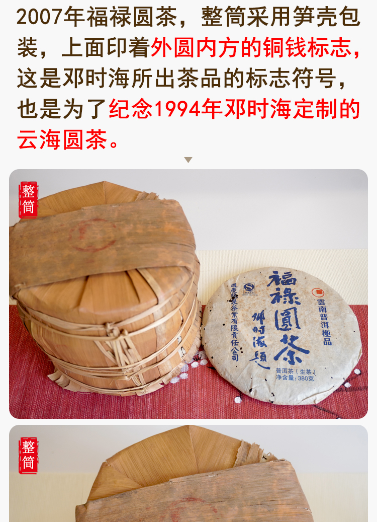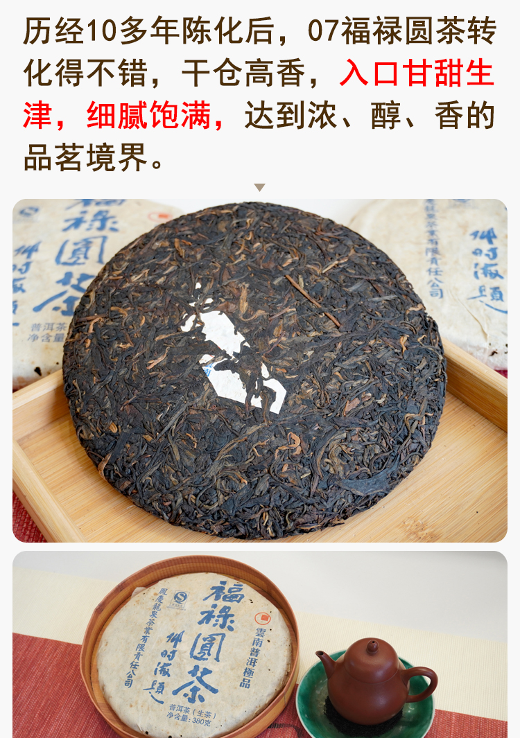 2007年邓时海福禄圆茶普洱生茶 甜柔 细腻 回甘好 邓老师经典代表福禄圆系列老生茶 干仓真品茶香 高性价比