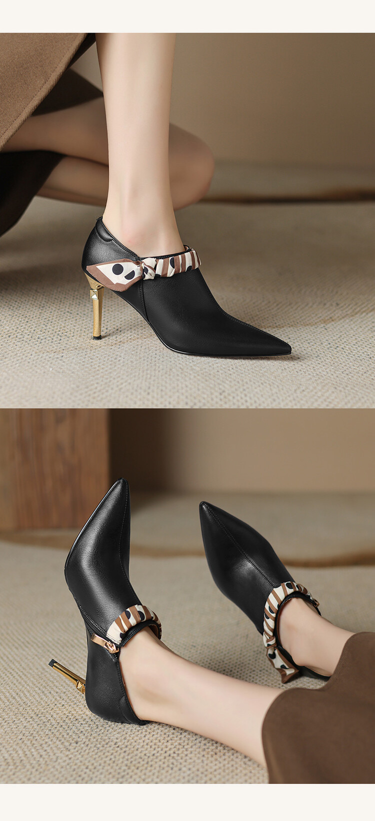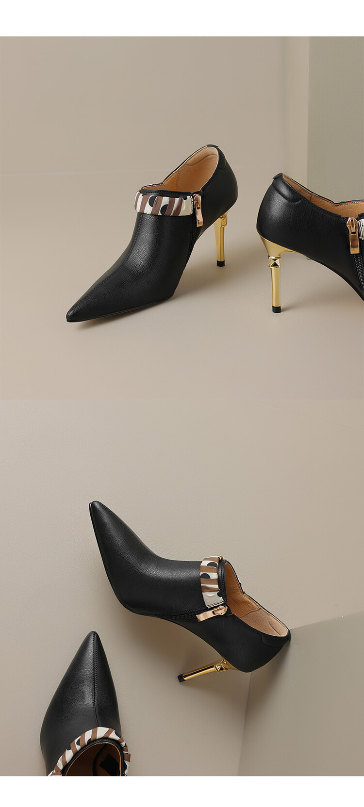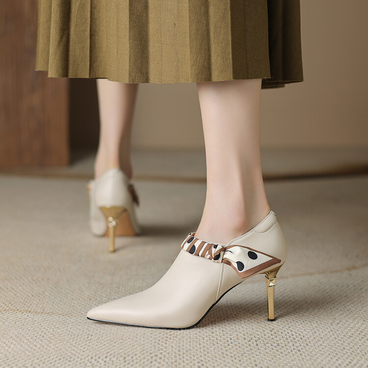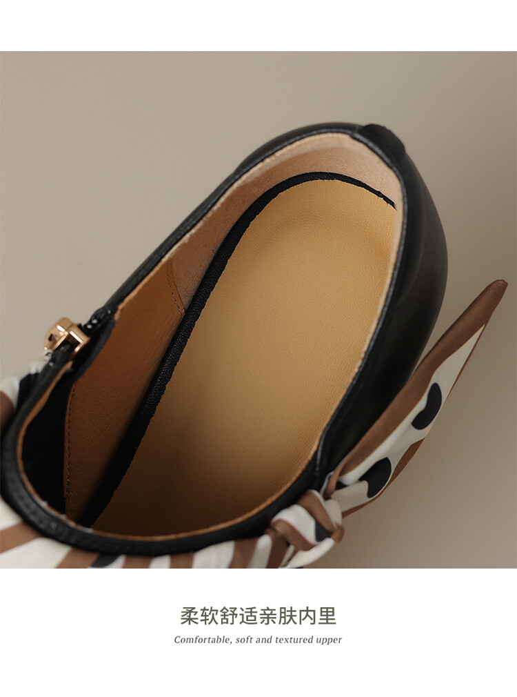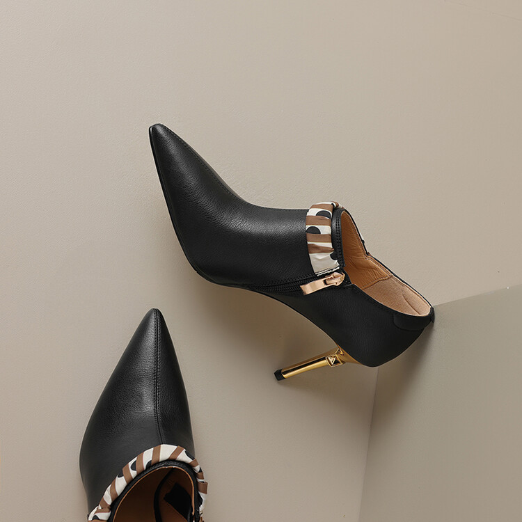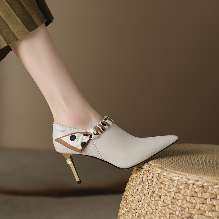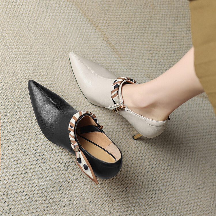 【预售5天】里外全皮细跟尖头丝带链条侧拉链深口单鞋牛皮韩版复古高跟鞋裸靴FDME&FD5281