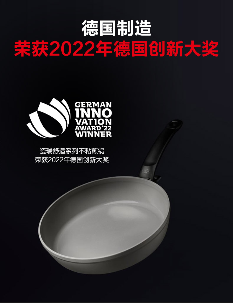 菲仕乐 德国进口 瓷瑞舒适系列不粘煎锅-赠配套玻璃盖及不粘锅铲