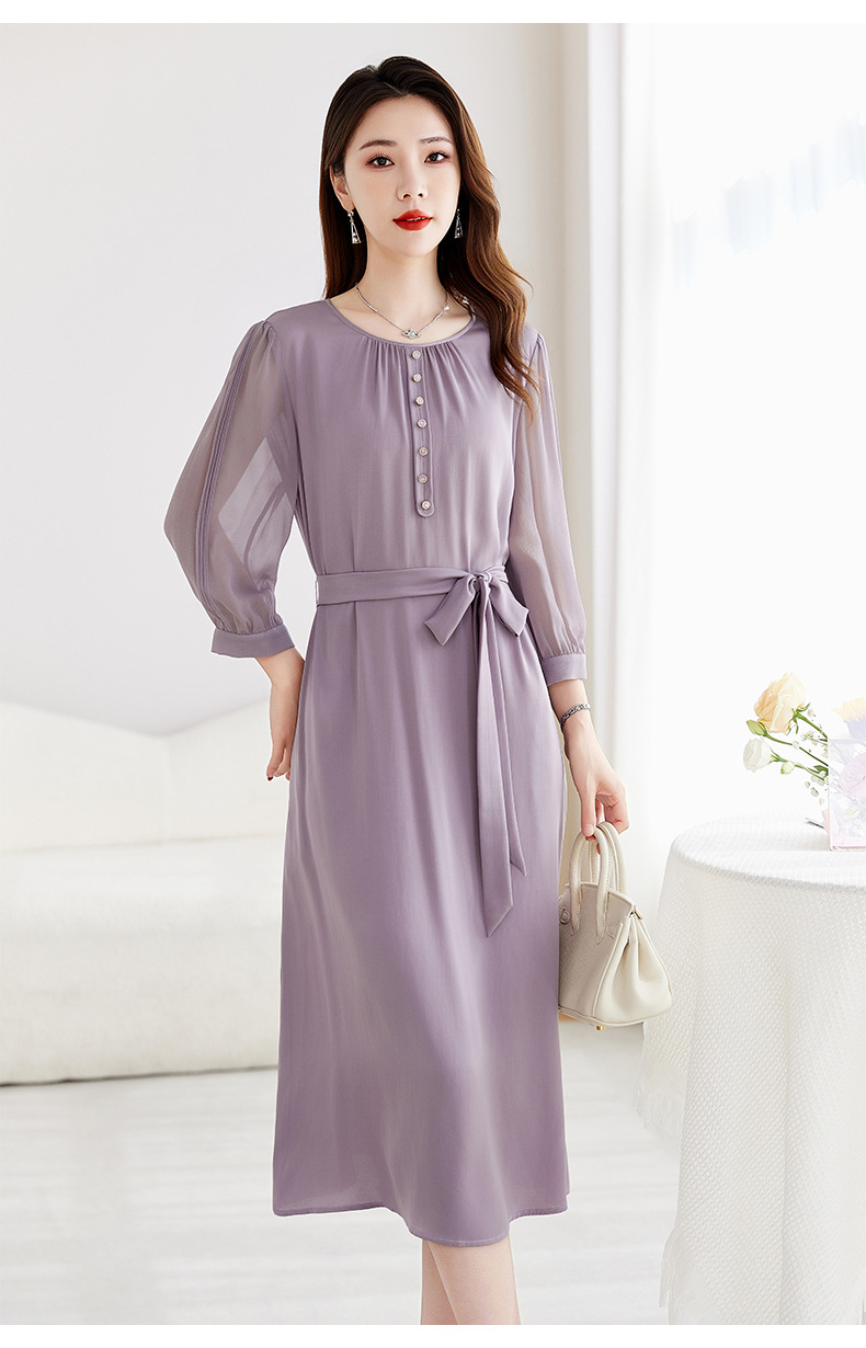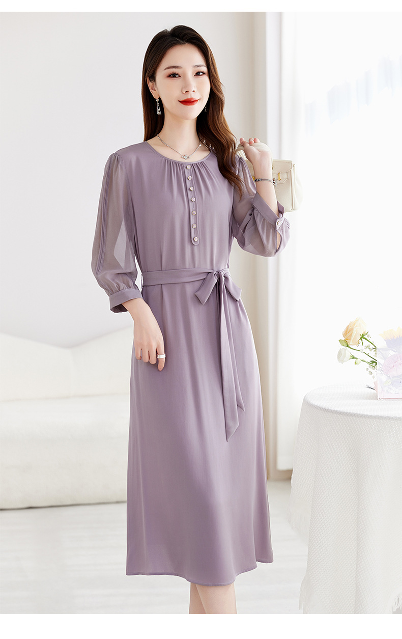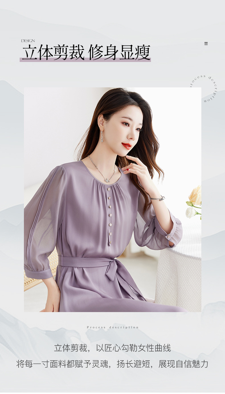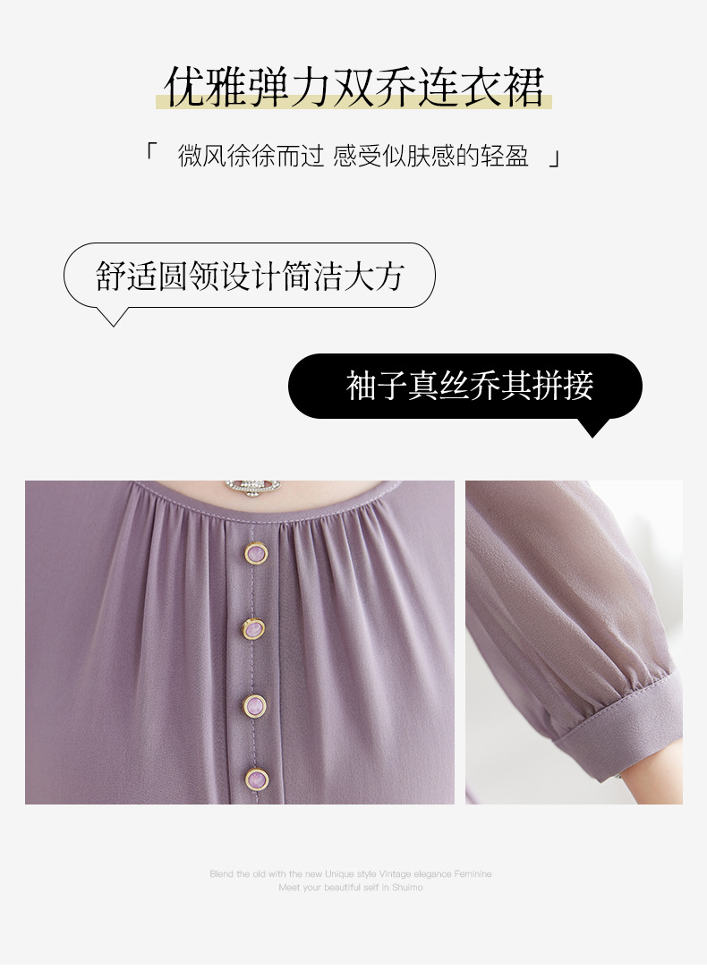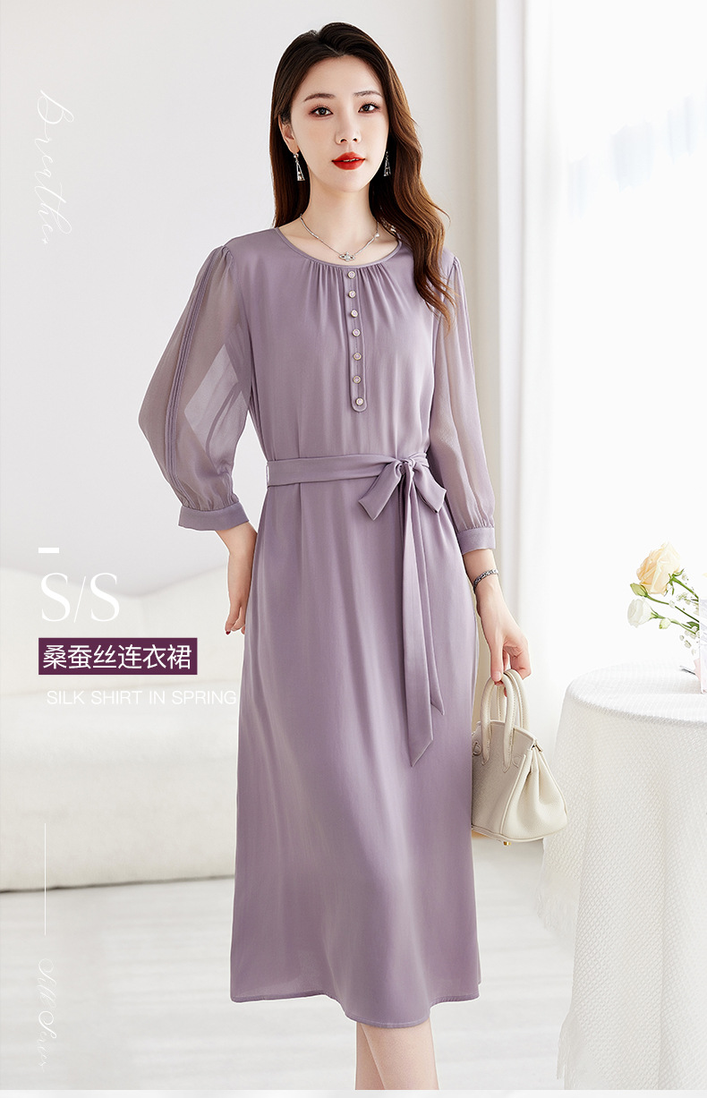 QS-82599130【紫色韵味】91.8%桑蚕丝弹力双乔连衣裙收腰通勤显瘦礼服裙9130