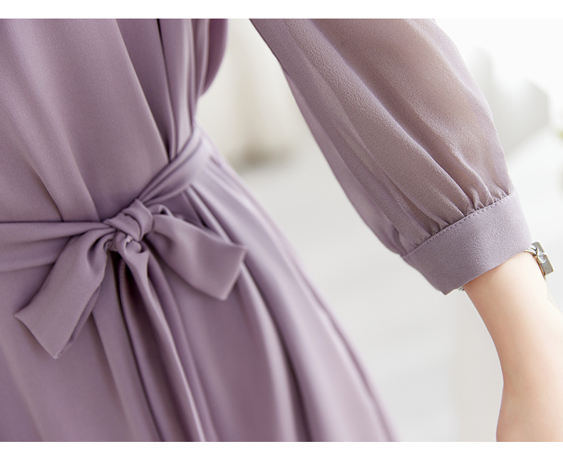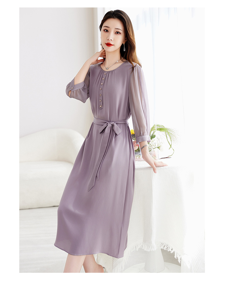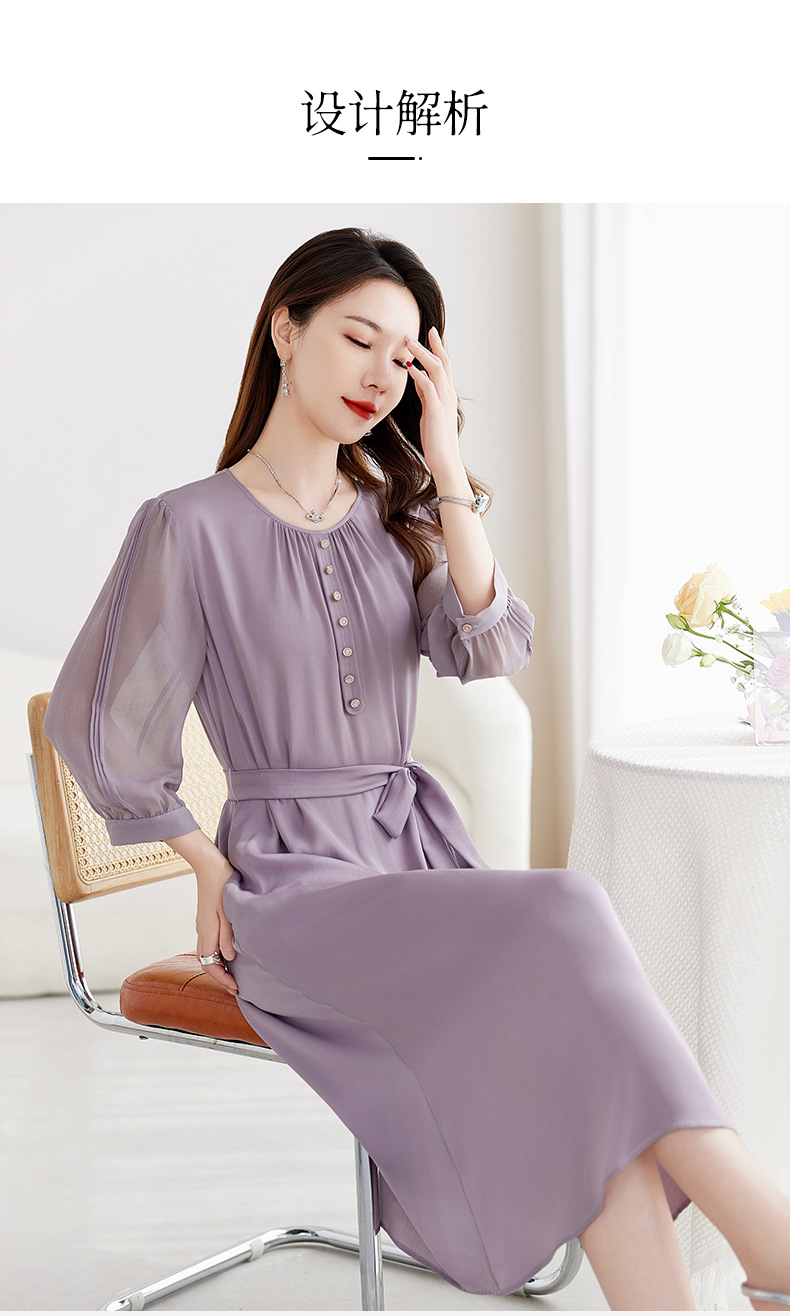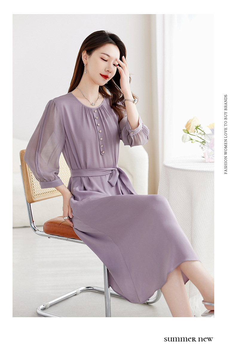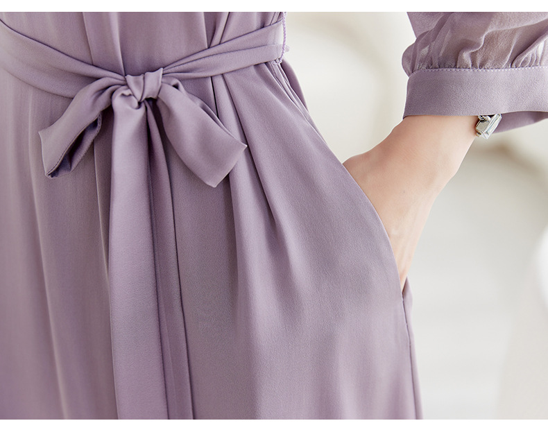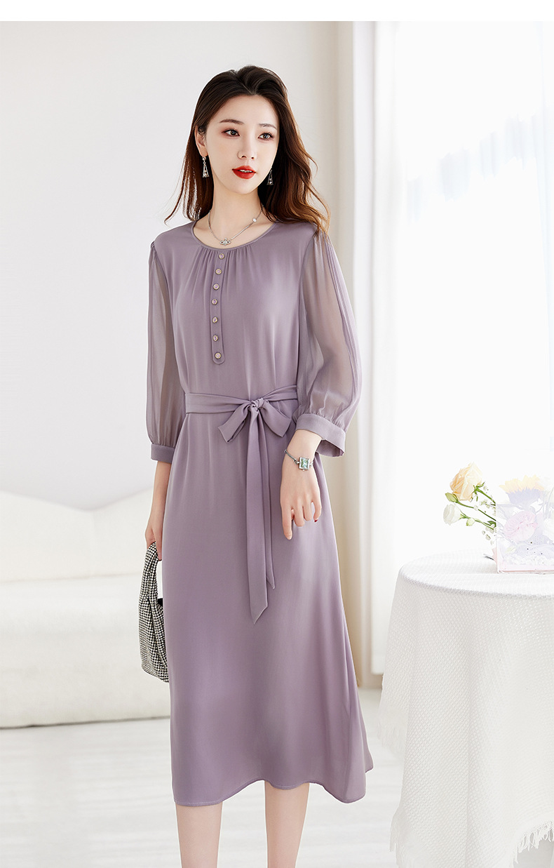 QS-82599130【紫色韵味】91.8%桑蚕丝弹力双乔连衣裙收腰通勤显瘦礼服裙9130