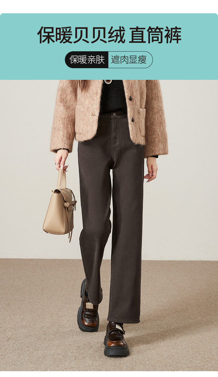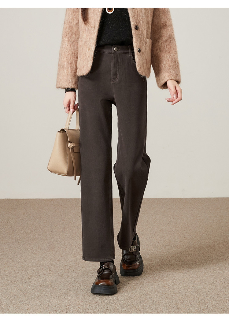 【加绒-九分-直筒裤】逸阳冬保暖贝贝绒暖糯厚实九分高弹烟管直筒裤4907